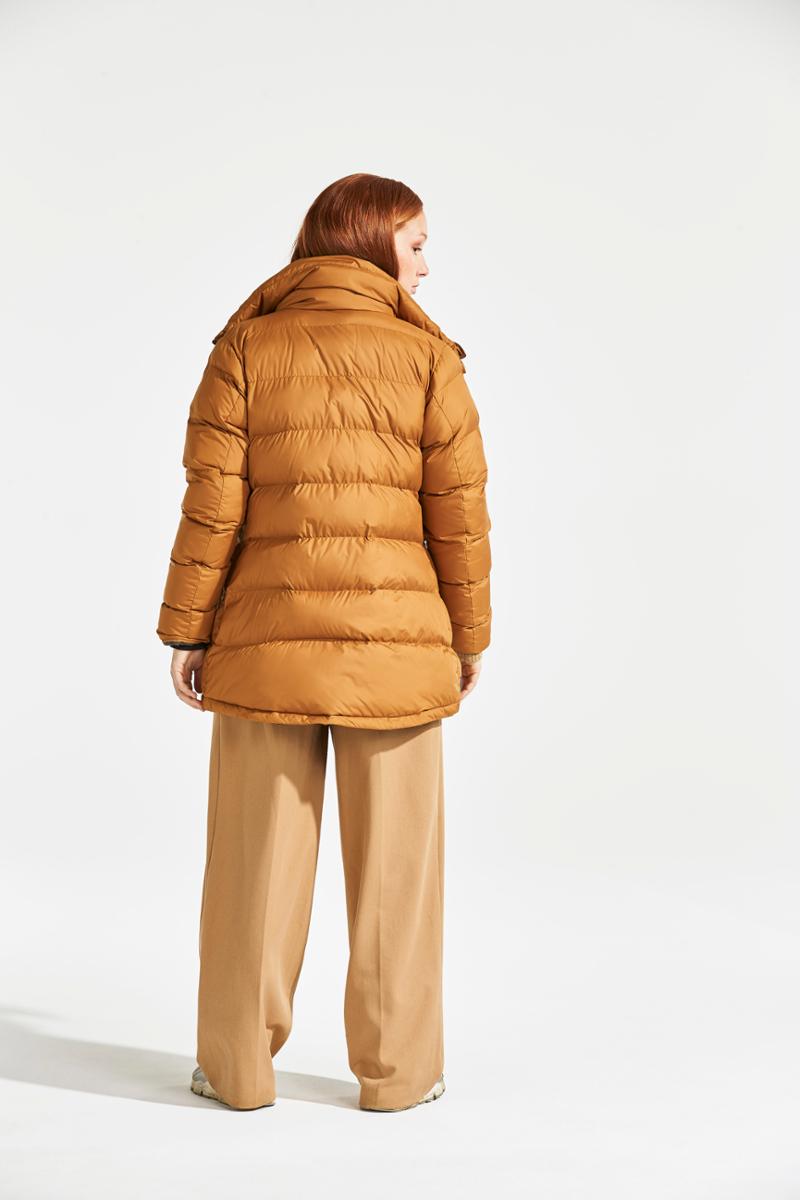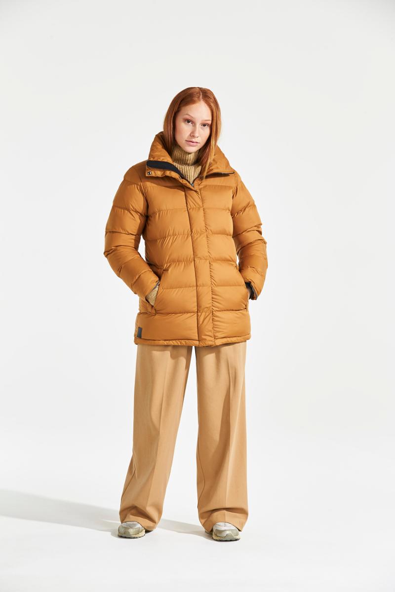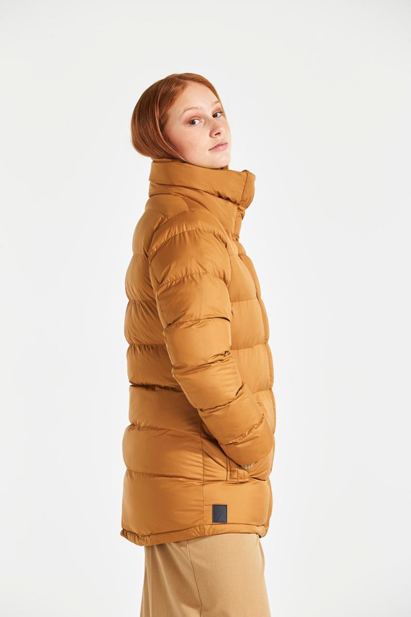 Hedda is a stylish puffer jacket from the Didriksons Originals collection with a feminine fit and a high collar to protect against cold winds. It has a matte finish and the outer layer is polyester. It features two lower pockets and a full-length front zip with protective flap. Hedda has a smart reflector solution, with a reflective detail inside the cuffs that is visible when the cuffs are turned up. The hem can be adjusted as needed. The jacket has a PFC-free water-repellent finish and a “High Loft” lining that provides good volume and keeps you warm on cold winter days. The lining has been dyed using a solution dyeing technique. This technique saves up to 80% water compared to conventionally dyed fabric in the same material.