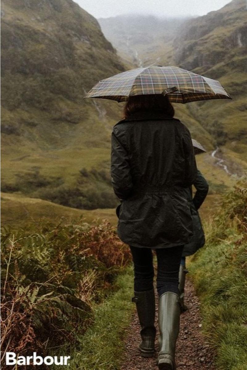 Barbour Portree Paraply er et teleskopisk design med en feminin farge på husets tartan. Denne paraplyen i veskestørrelse er ferdig med et tonehåndtak og et ytre deksel med en vevd merkelapp.