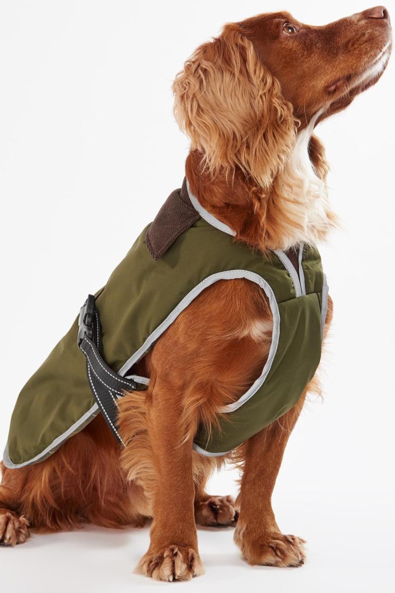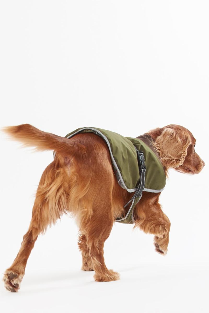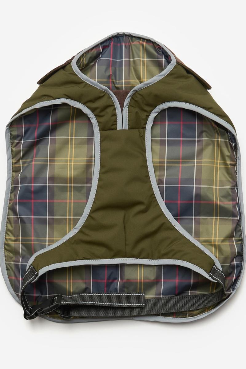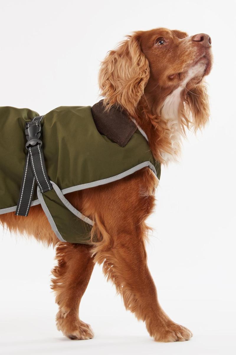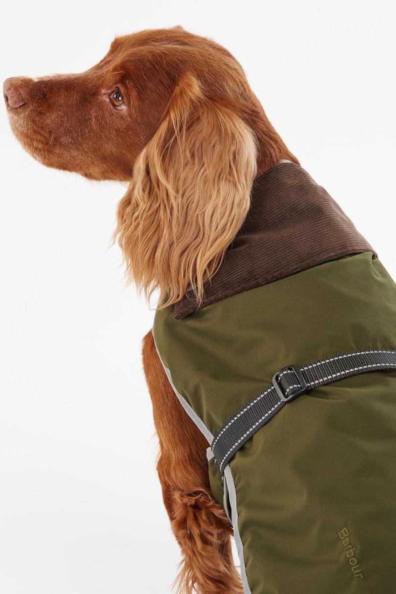 Barbour Monmouth Waterproof Dog Coat har en lett design med en rask frigjøringsfeste over ryggen. Denne hundefrakken viser et selehull for blyfeste, og har en søt kontrastkrage.