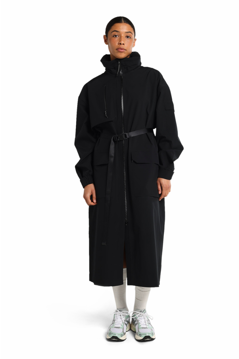Trenchcoats går aldri av moten. Stilrene Klipra Coat fra Blæst får deg til å se skarp ut, samtidig som den skjermer deg mot elementene. Den er vanntett, vindtett og pustende, og hetten kan skjules i stativkragen når du ikke trenger den. Beltet skaper en feminin silhuett og kommer med en magnetisk Fidlock®-spenne. Kåpen har en brystlomme, en ermelomme og brukslommer med både topp- og sideåpning.