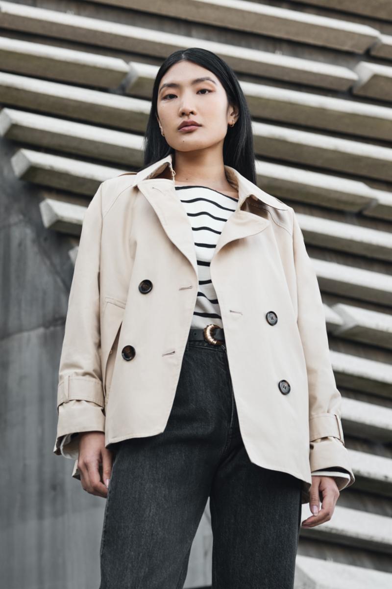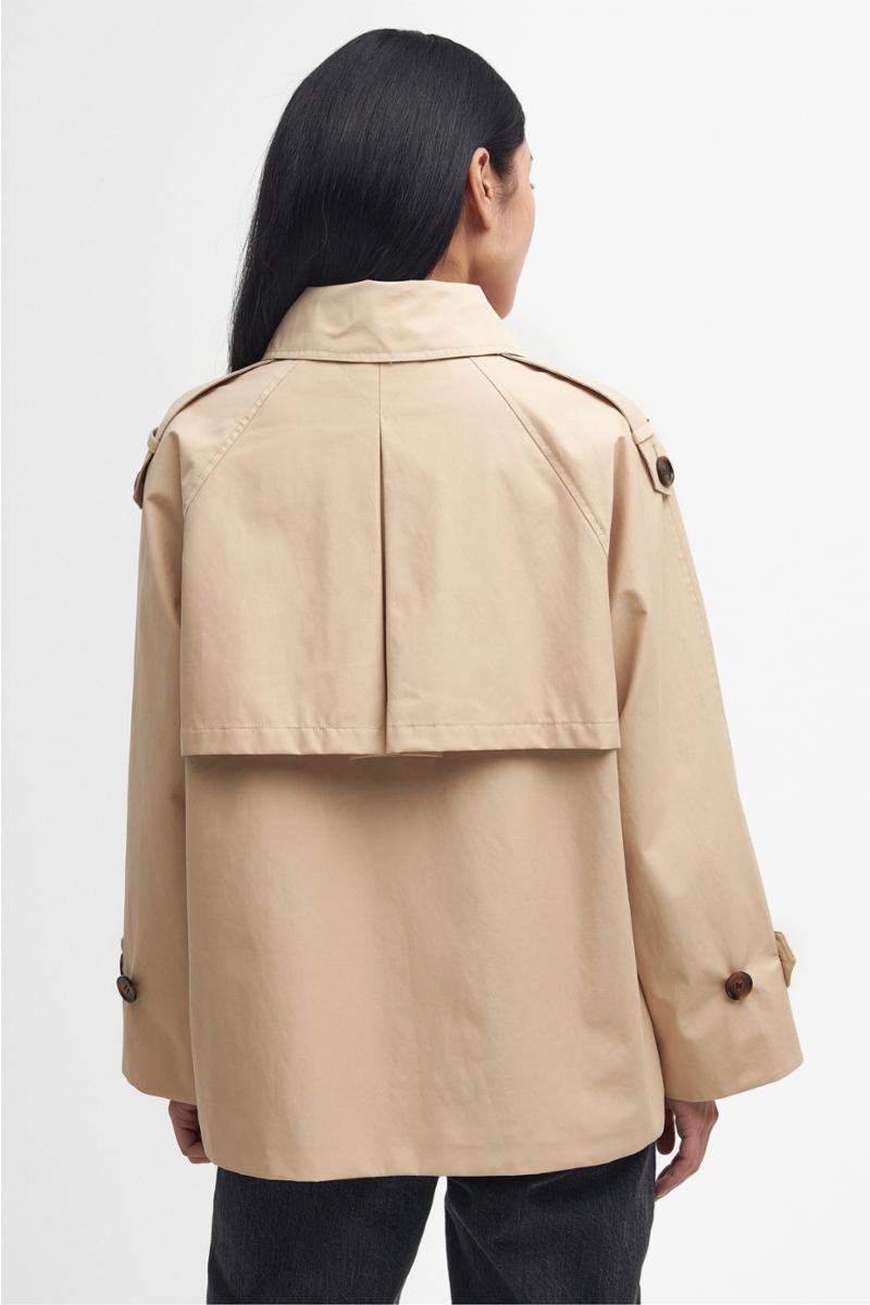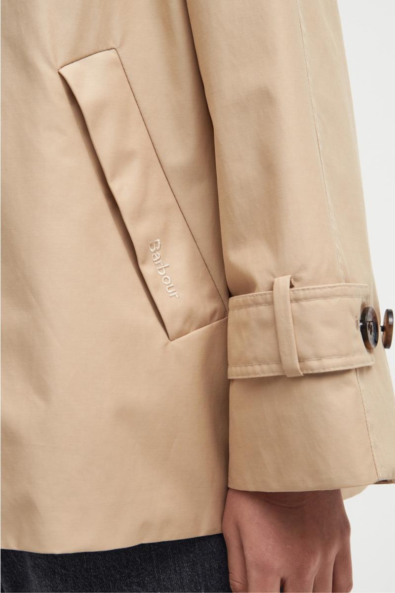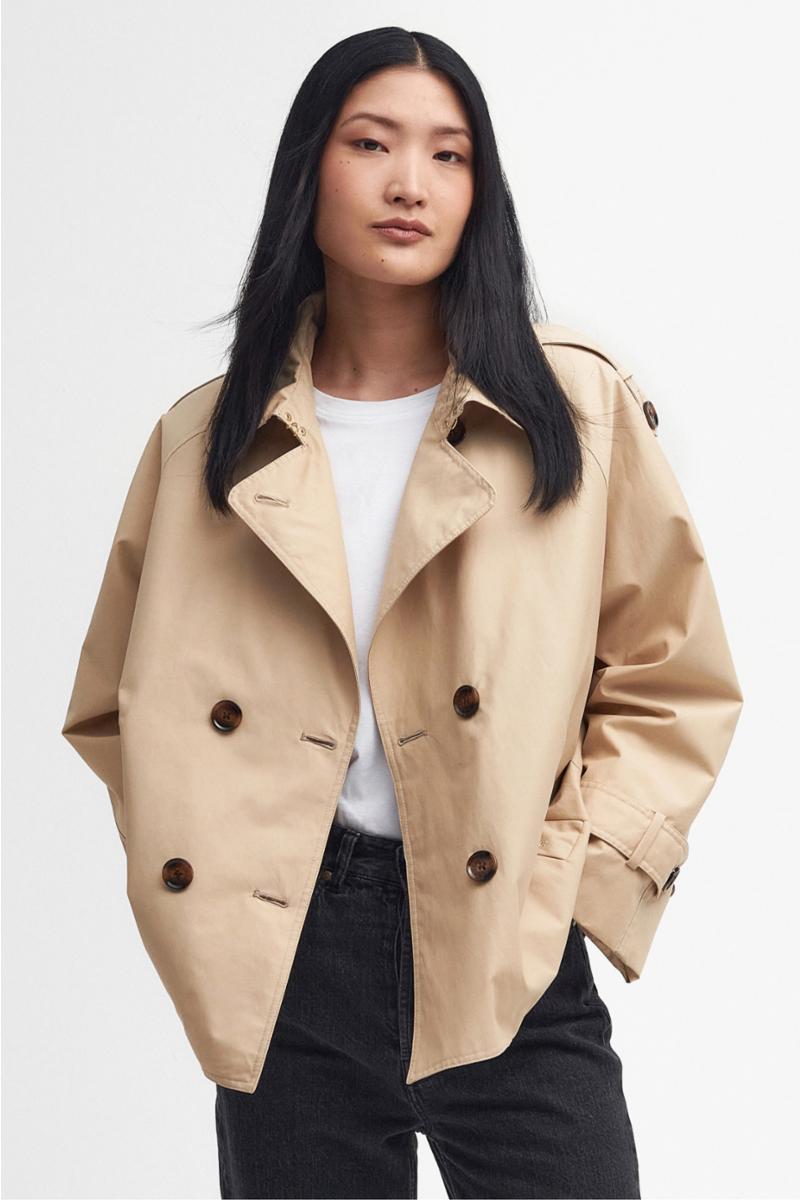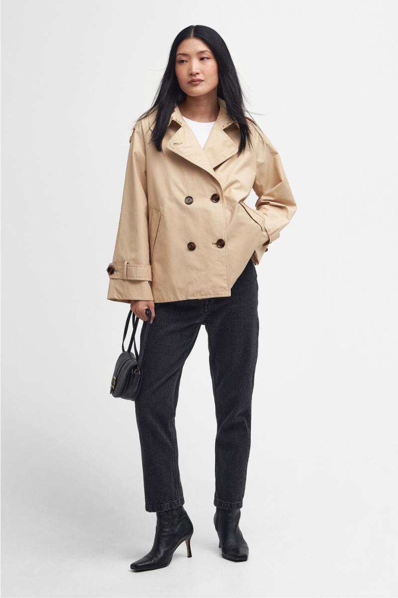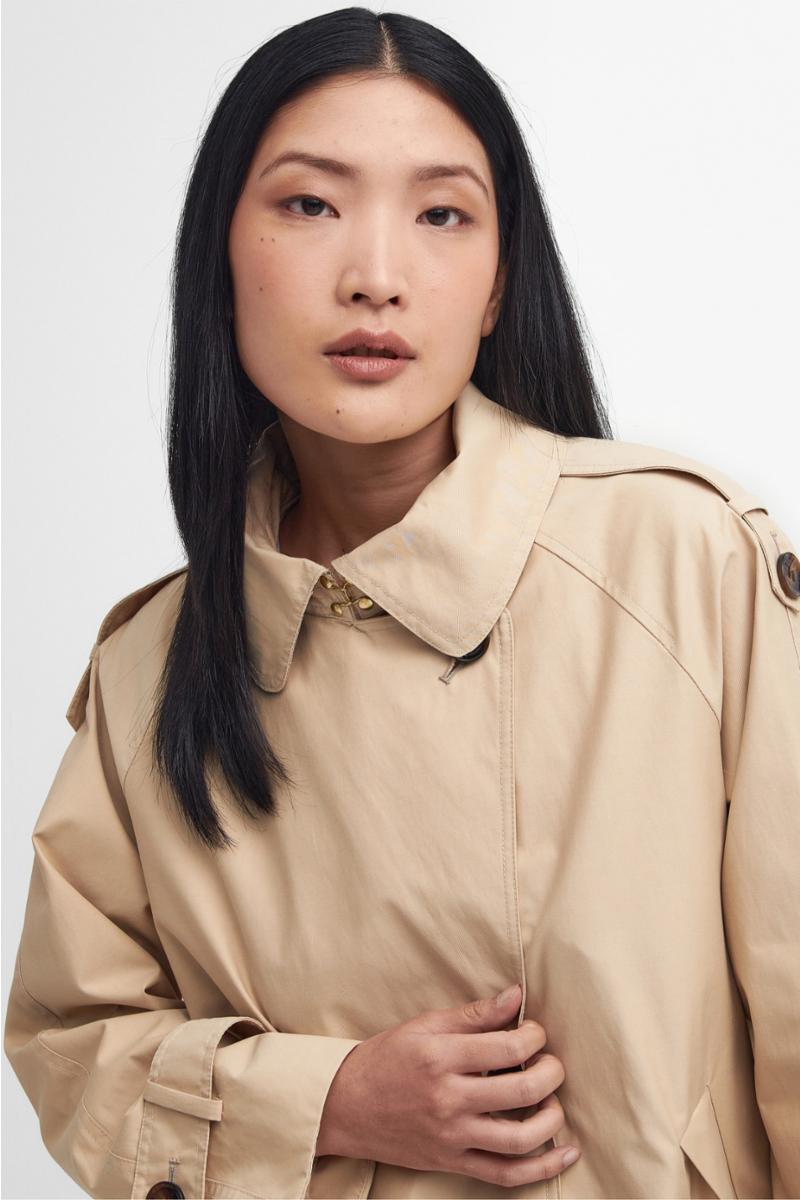 Barbour Annie Showerproof Jacket er en elegant og moderne trench jakke i teknisk vanntett, vindtett og pustende materiale. En `cropped´ versjon av den klassiske trenchcoat med en ungdommelig vri, for bruk i all slags vær, hele året. En vakker nyhet fra Barbour Modern Heritage Collection.