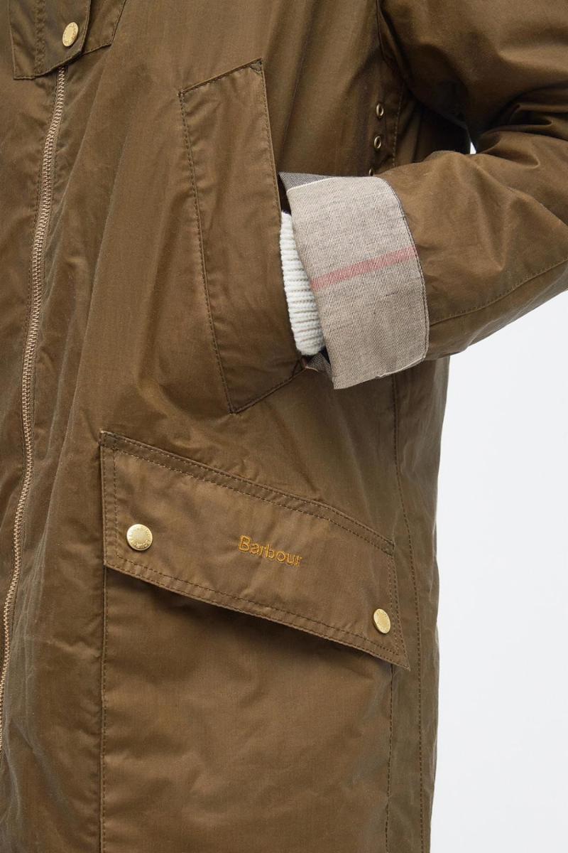 “Merging together two classic outwear styles, the parka and waxed jacket give this new addition to the Barbour waxed jacket selection perfect for all weather. The Barbour Portmore Waxed Parka Jacket showcases the technicality and functionality that Barbour does best with a fixed hood and handwarmer pockets for colder days. Finished with a tartan lining to the hood and cuffs, if you choose to roll them up, it's perfect for transitional weather”.