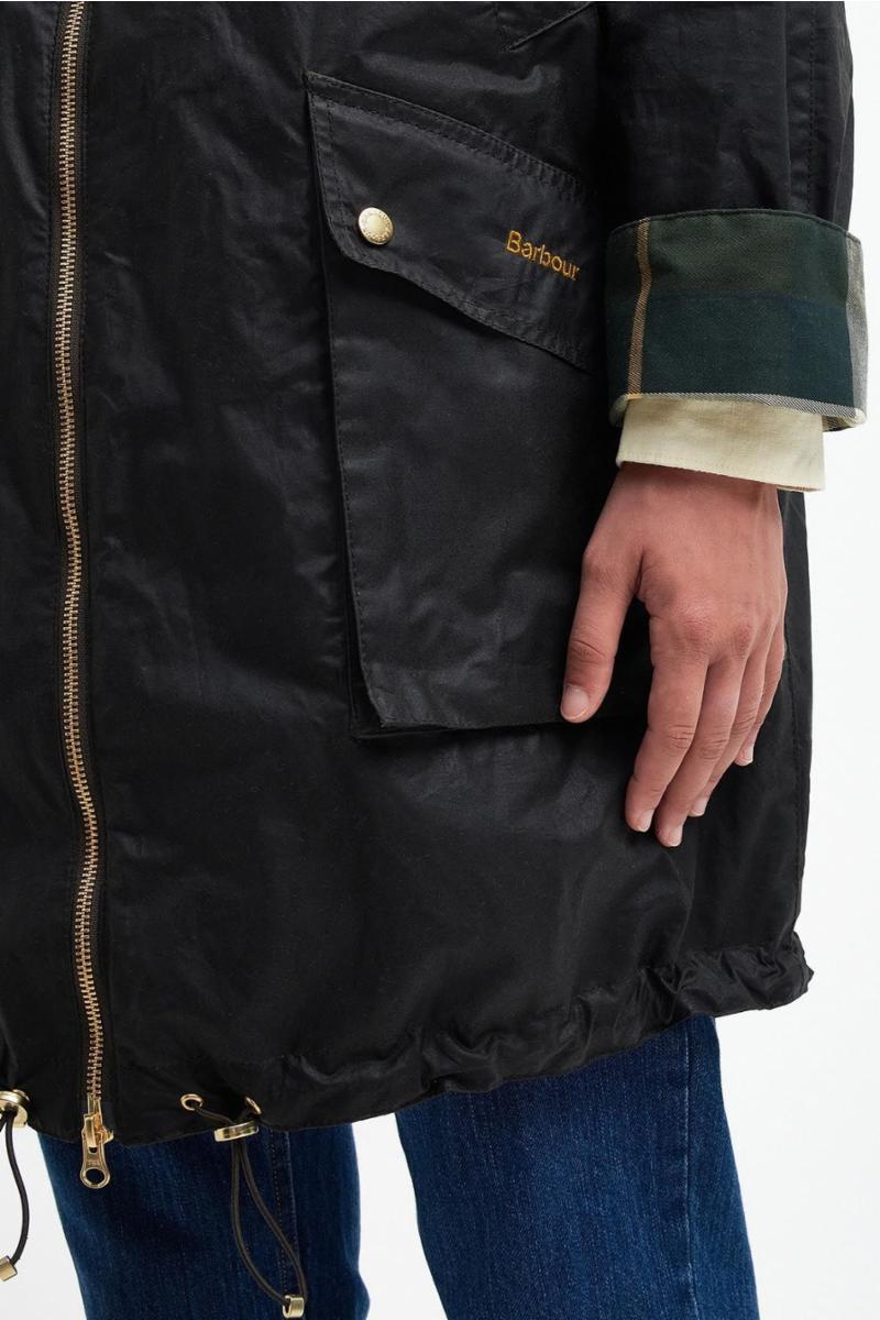 “Merging together two classic outwear styles, the parka and waxed jacket give this new addition to the Barbour waxed jacket selection perfect for all weather. The Barbour Portmore Waxed Parka Jacket showcases the technicality and functionality that Barbour does best with a fixed hood and handwarmer pockets for colder days. Finished with a tartan lining to the hood and cuffs, if you choose to roll them up, it's perfect for transitional weather”.