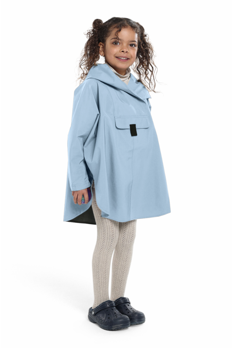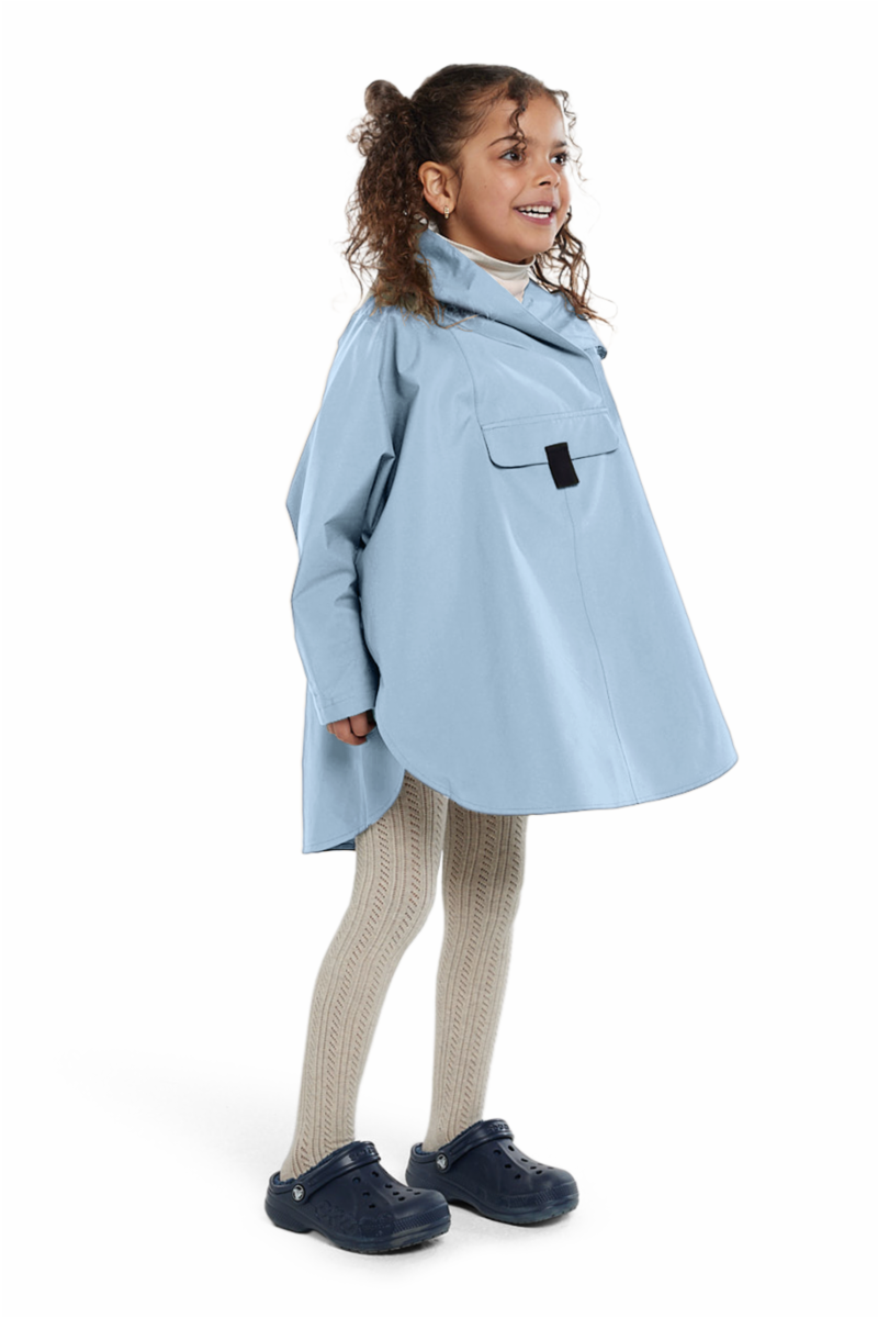 Klassikeren Bergen Poncho fra Blæst har vært en lokal favoritt i årevis og BERGEN MINI Poncho lar deg og barnet ditt matche antrekk. Denne overdimensjonerte barneponchoen har de samme funksjonene som voksen ponchoen og er både vanntett, vindtett og pustende i materialet.
