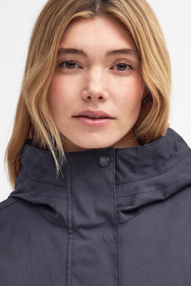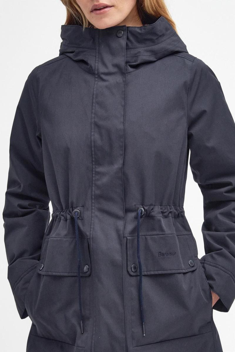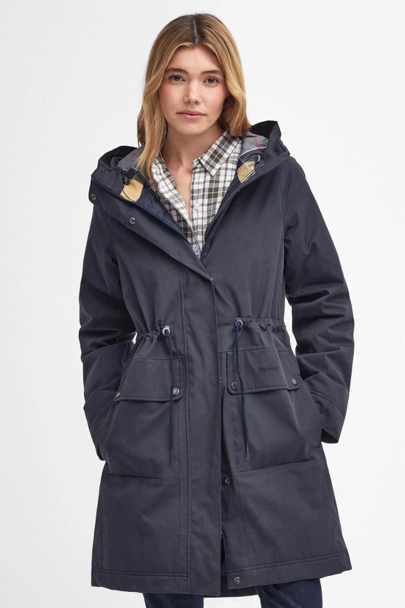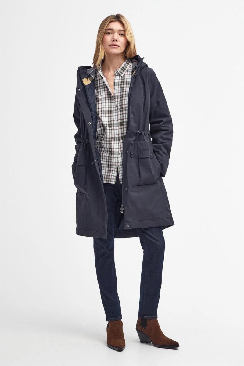 Barbour Bowlees-jakken har en vanntett, pustende langlinjedesign med en fast snorkelhette med tartanfôr. Denne jakken har en flatterende snøring i midjen, og har studslommer for praktisk oppbevaringsplass og en høy lav kant for førsteklasses oppmerksomhet på detaljer. Et Barbour-merke på venstre lomme fullfører plagget uten problemer.