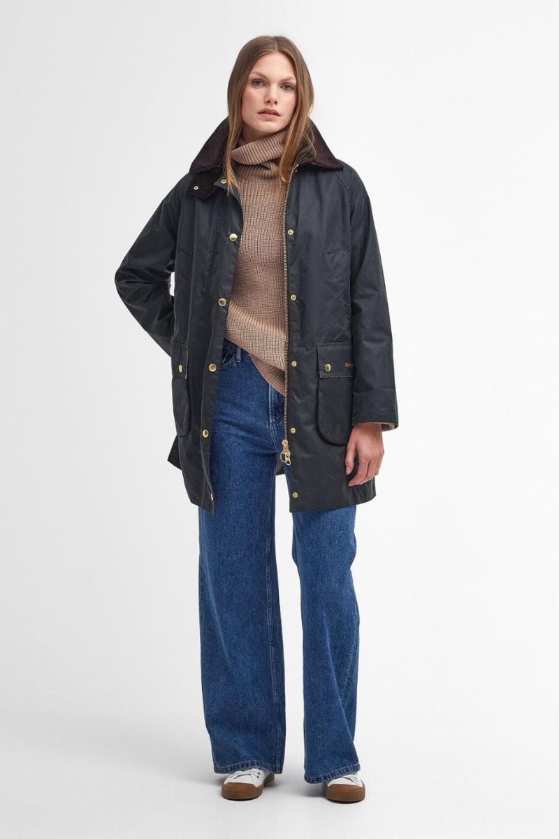 Klassikeren Beadnell Wax Jacket er en av Barbours signaturvoksede jakkestiler, først introdusert til serien i 2010. Denne sesongen gir Barbour Long Beadnell voksjakken denne ikoniske stilen et nytt utseende, takket være sin avslappede A-linje silhuett supplert med tradisjonell sal lommer og håndvarmerlommer til brystet som en ode til forgjengeren.