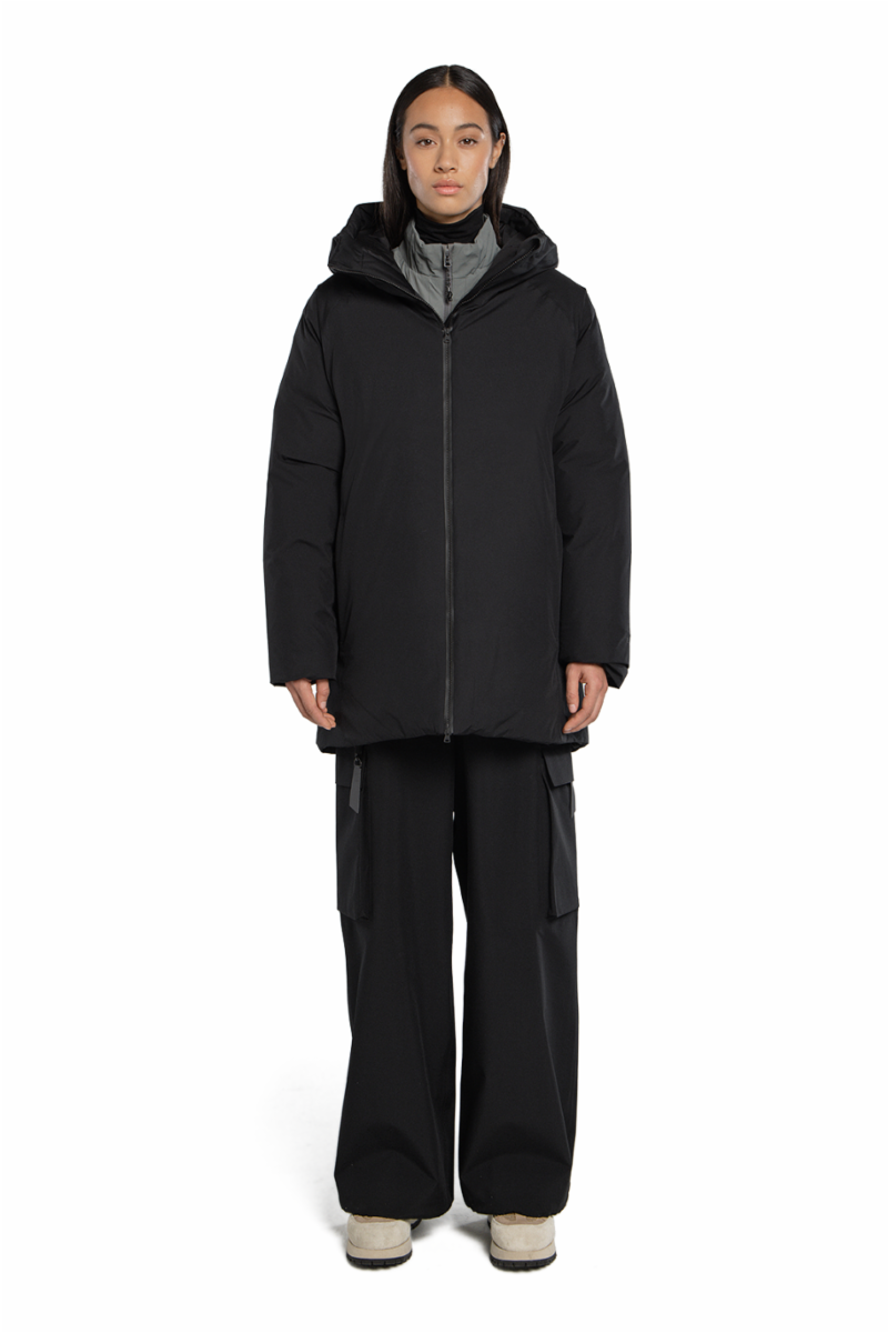 Denne vinterjakken for kvinner er en kortere versjon av vår klassiske Bjorli dunjakke. Den rene silhuetten og de tekniske egenskapene gjør den til en allsidig stil for enhver garderobe, spesielt siden den er vanntett. Vanlig passform. Justerbar hette.