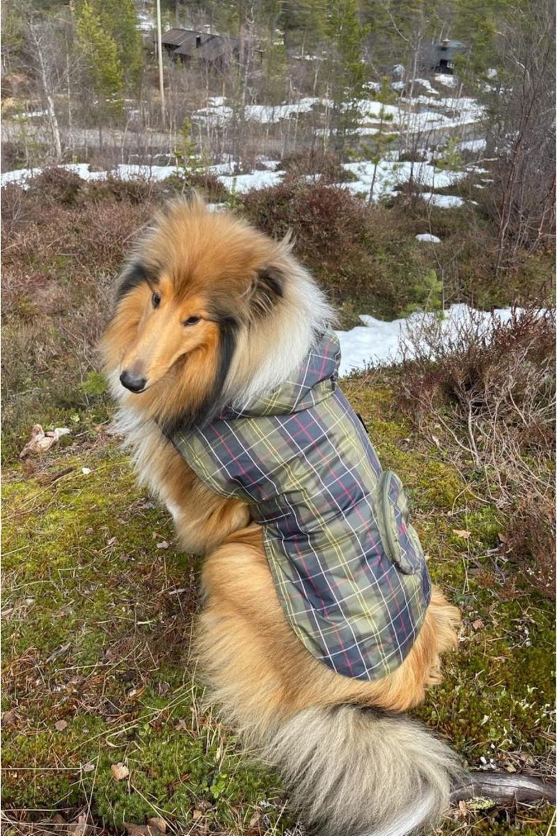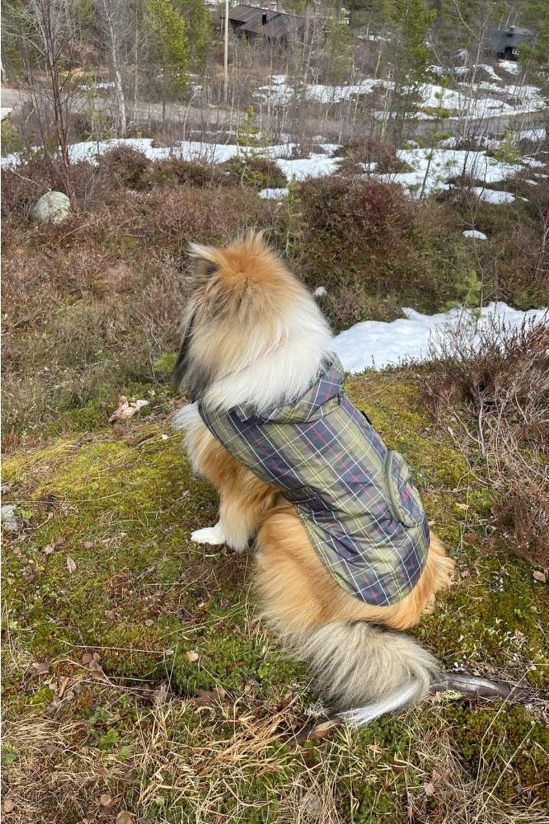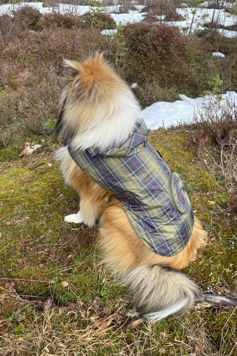 Ideell for regnfulle turer, Barbour-hundefrakken pakkes ned i lommen for enkelhet når du er på farten. Dette dusjtette laget kommer i et all-over tartan-trykk med en justerbar midjestropp, som gir den perfekte passformen for hunden.