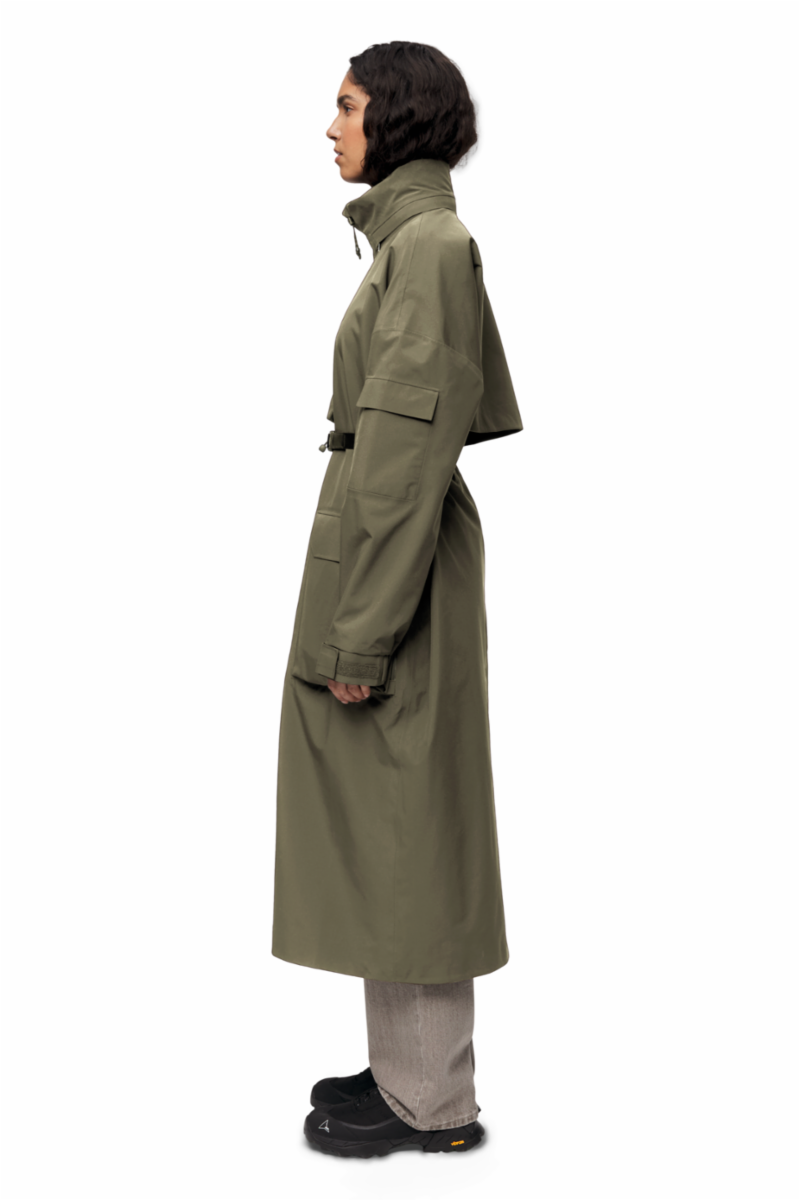 Trenchcoats går aldri av moten. Stilrene Klipra Coat fra Blæst får deg til å se skarp ut, samtidig som den skjermer deg mot elementene. Den er vanntett, vindtett og pustende, og hetten kan skjules i stativkragen når du ikke trenger den. Beltet skaper en feminin silhuett og kommer med en magnetisk Fidlock®-spenne. Kåpen har en brystlomme, en ermelomme og brukslommer med både topp- og sideåpning.