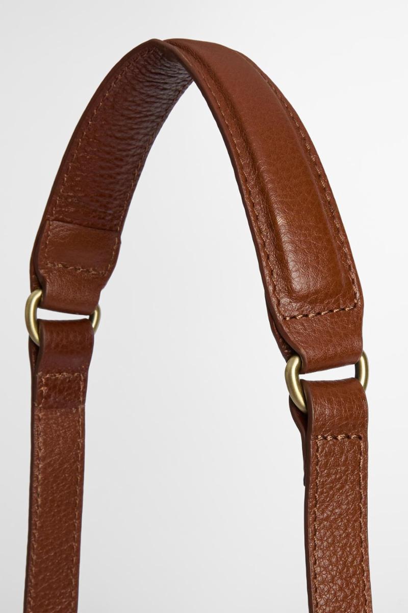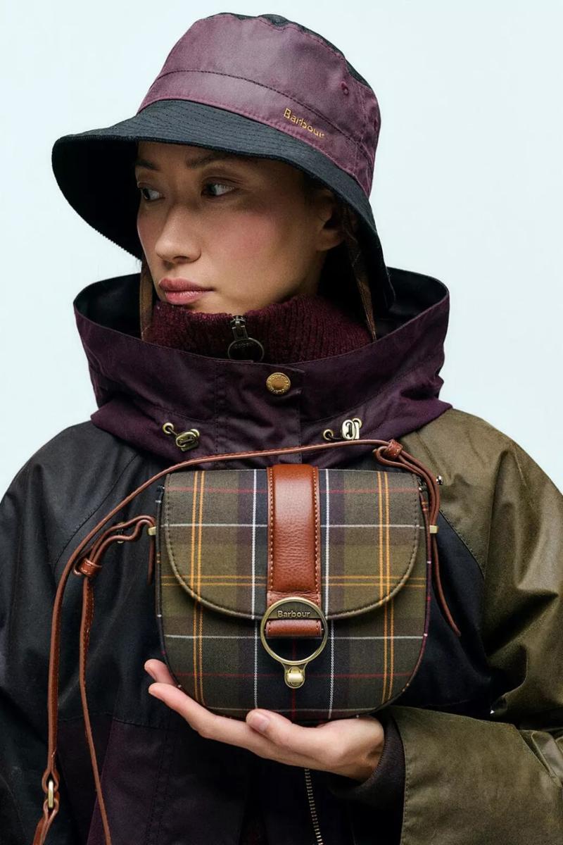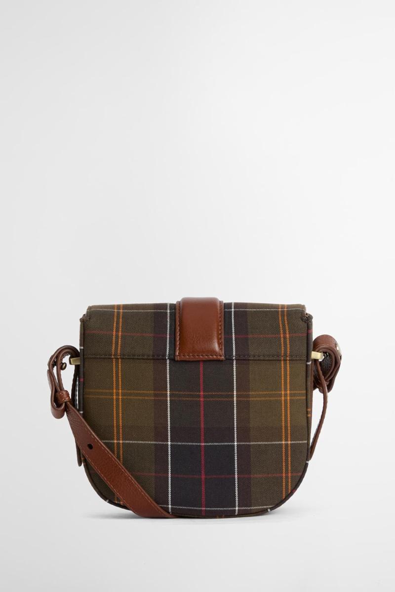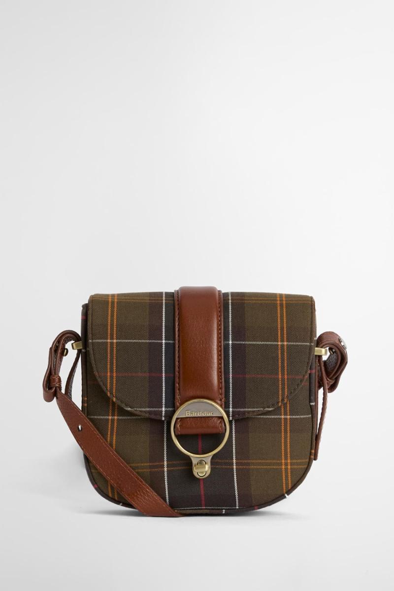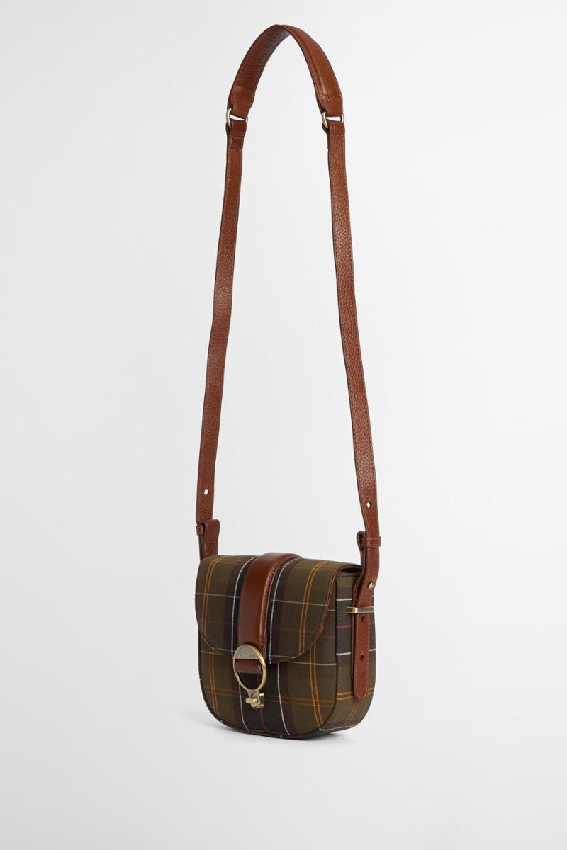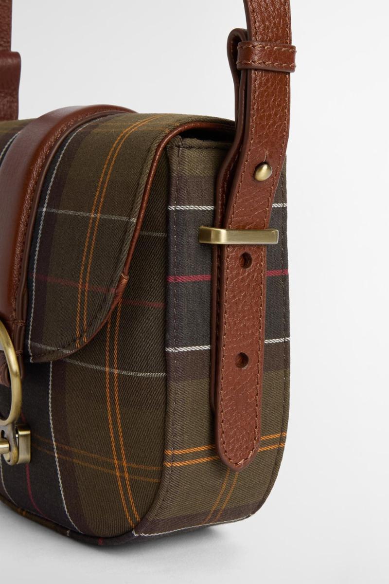 Barbour Elm Tartan Crossbody Bag er laget av bomullsduk med bovine skinndetaljer, og har en spenne i eldgammel messingeffekt med en merket svinglås.