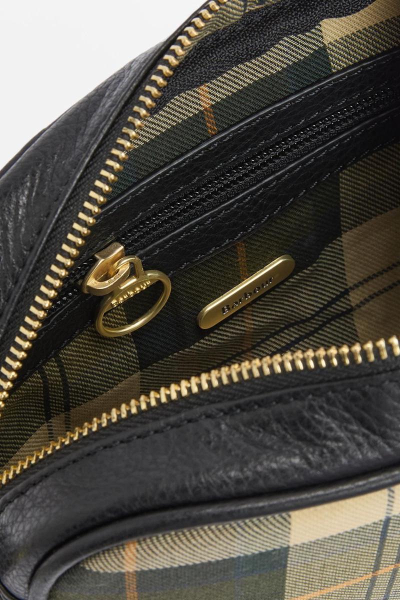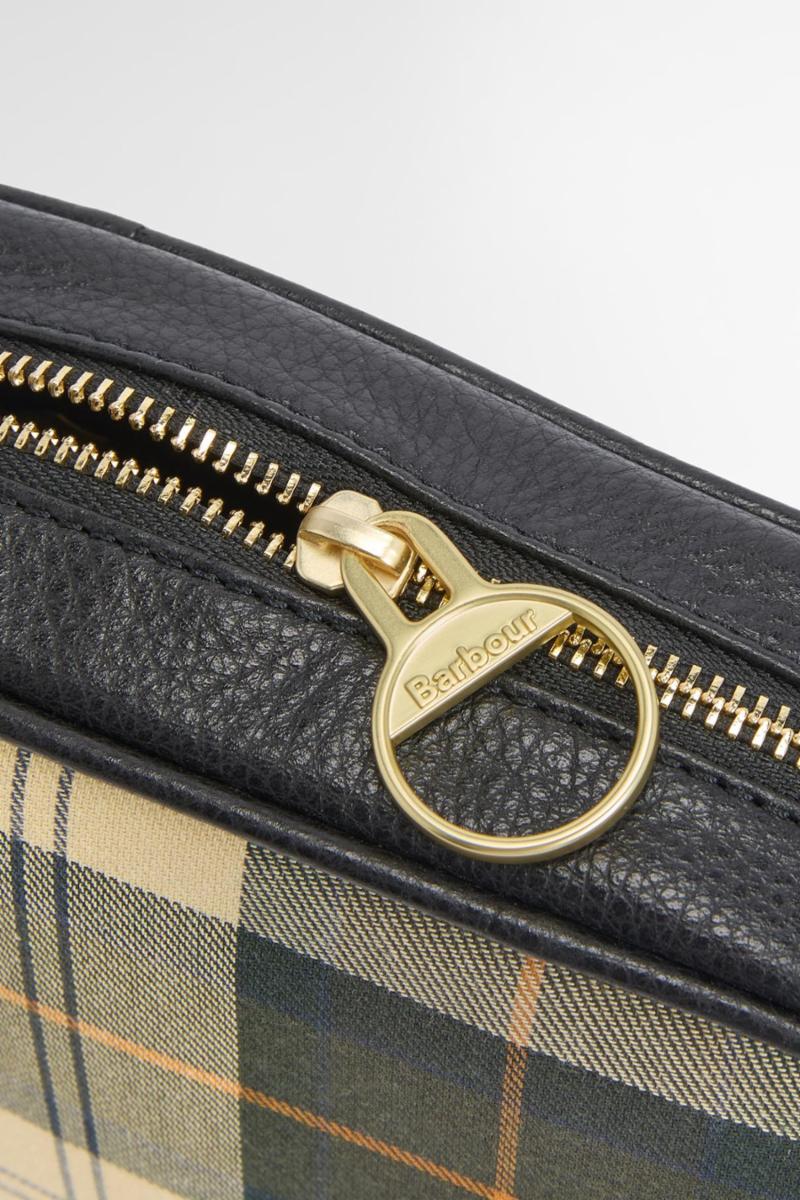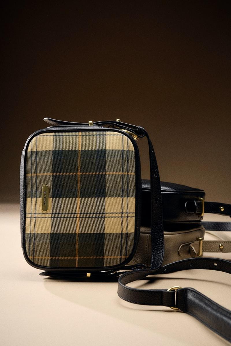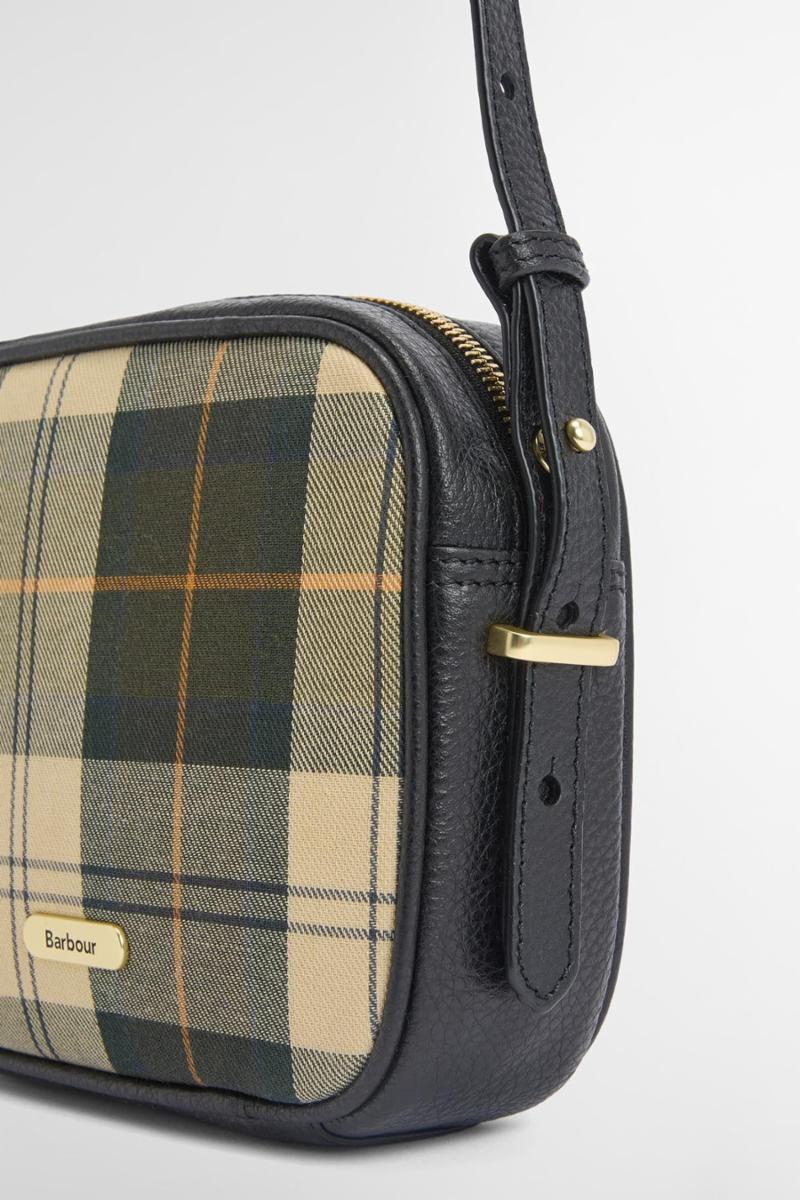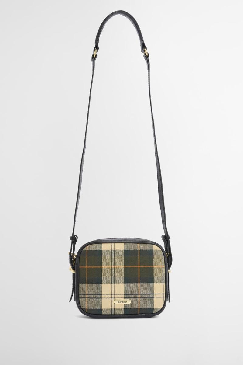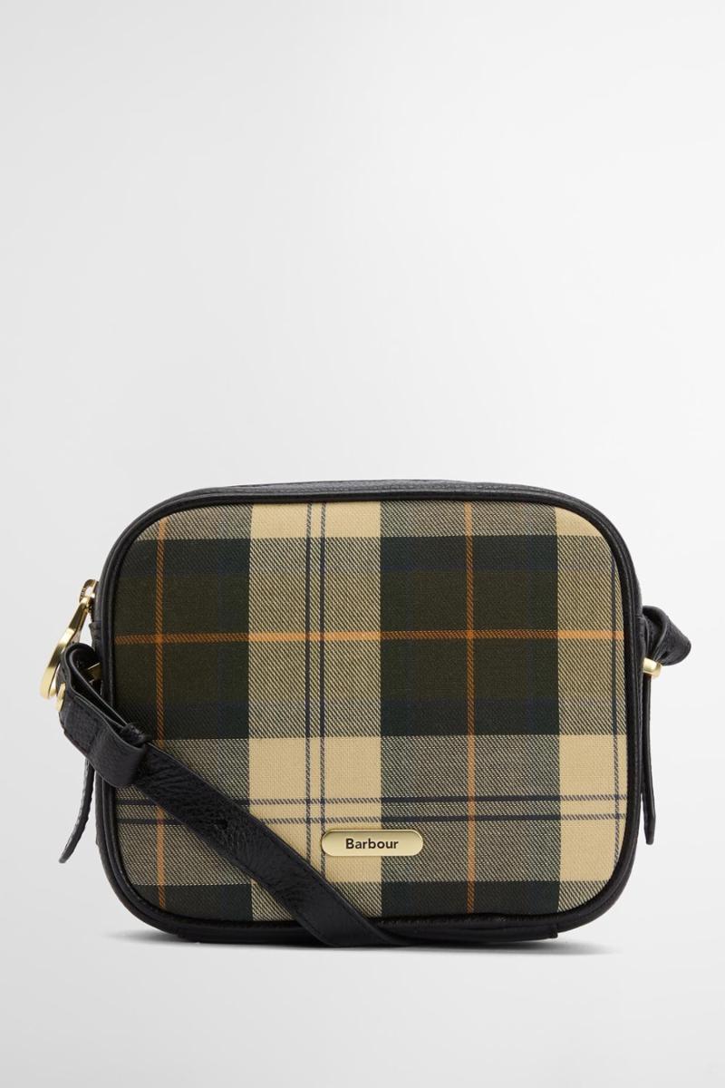 Barbour Daphne Tartan Crossbody Bag er støpt til en elegant kameraveske med tartan-lerret og naturlig kornete skinn, og har klassisk stil med glidelås og slanke skulderreim.