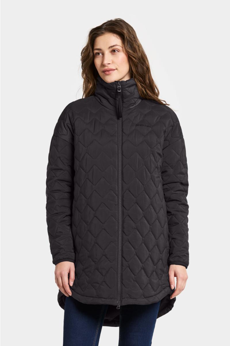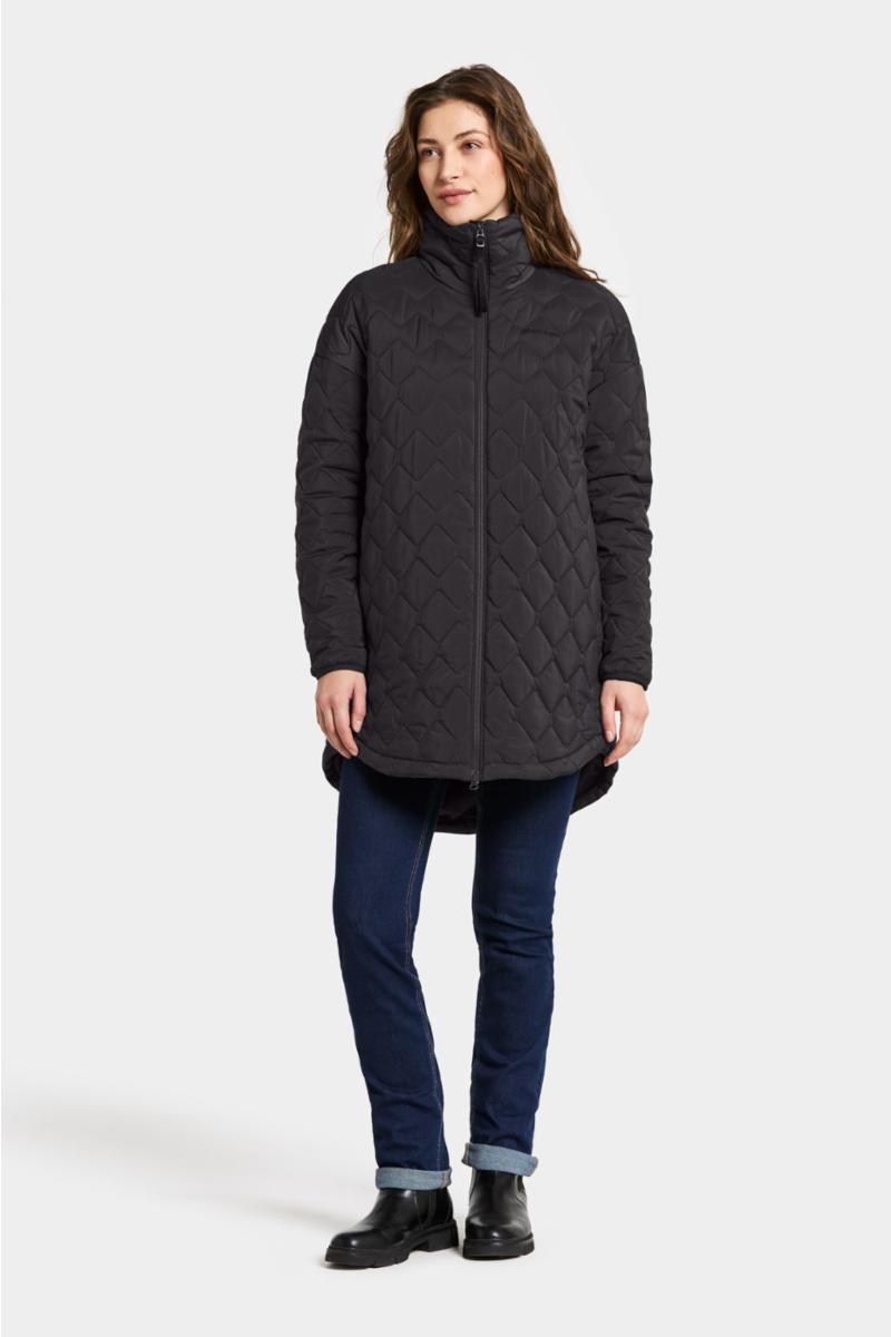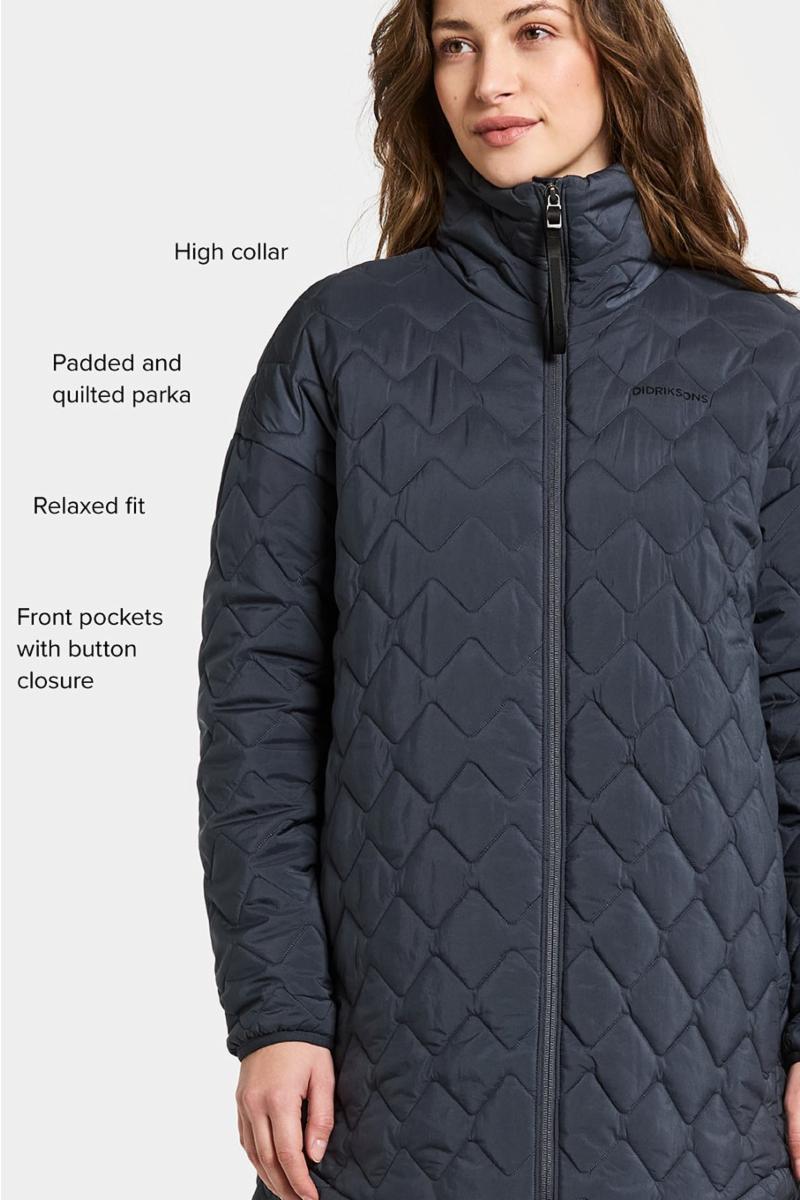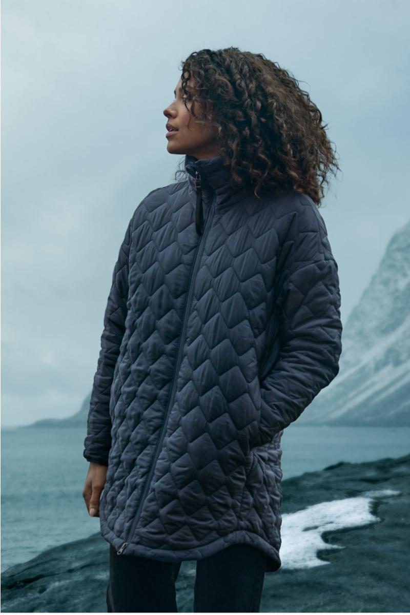 Nima er en polstret og vattert parkas som kombinerer stil og funksjon for daglig bruk. Den har en høy og polstret krage som gir ekstra varme og komfort. Parkasen har en rett silhuett og en avslappet passform, noe som gjør den perfekt for lag-på-lag på kjølige dager.