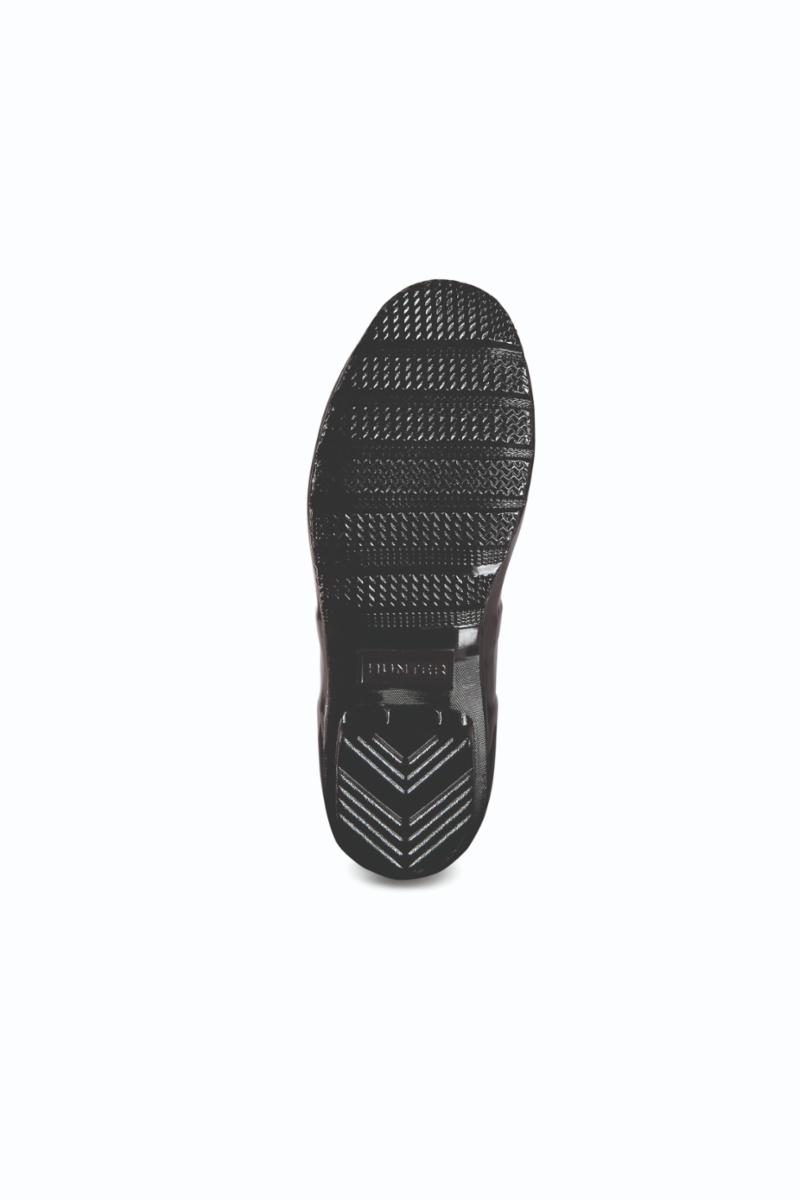 Perfekt for våte værforhold, denne Wellington-støvelen for kvinner har vært i hjertet av Hunter Original-merket siden introduksjonen i 1956. Hvert par er laget av naturgummi, laget av 28 håndkuttede deler og satt sammen over tre dager på en aluminiumslast. skreddersydd til Hunter, før den ble vulkanisert for overlegen beskyttelse. Disse høye svarte gummistøvlene har Hunter Original-mønsteret og et komfortabelt polyesterfôr, og er en nødvendighet på en regnfull dag.