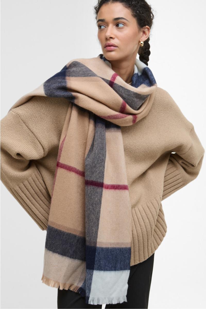 Barbour Rosefield Tartan-skjerfet er laget av luksuriøs lammeull og har en overdimensjonert tartan-design med duskfinish. Perfekt for å legge et sofistikert lag til ethvert antrekk, dette skjerfet er ferdig med en Barbour-vevd etikett på baksiden.