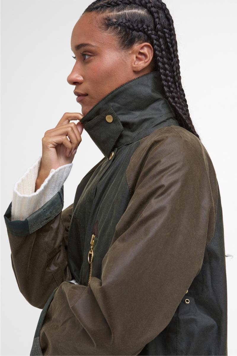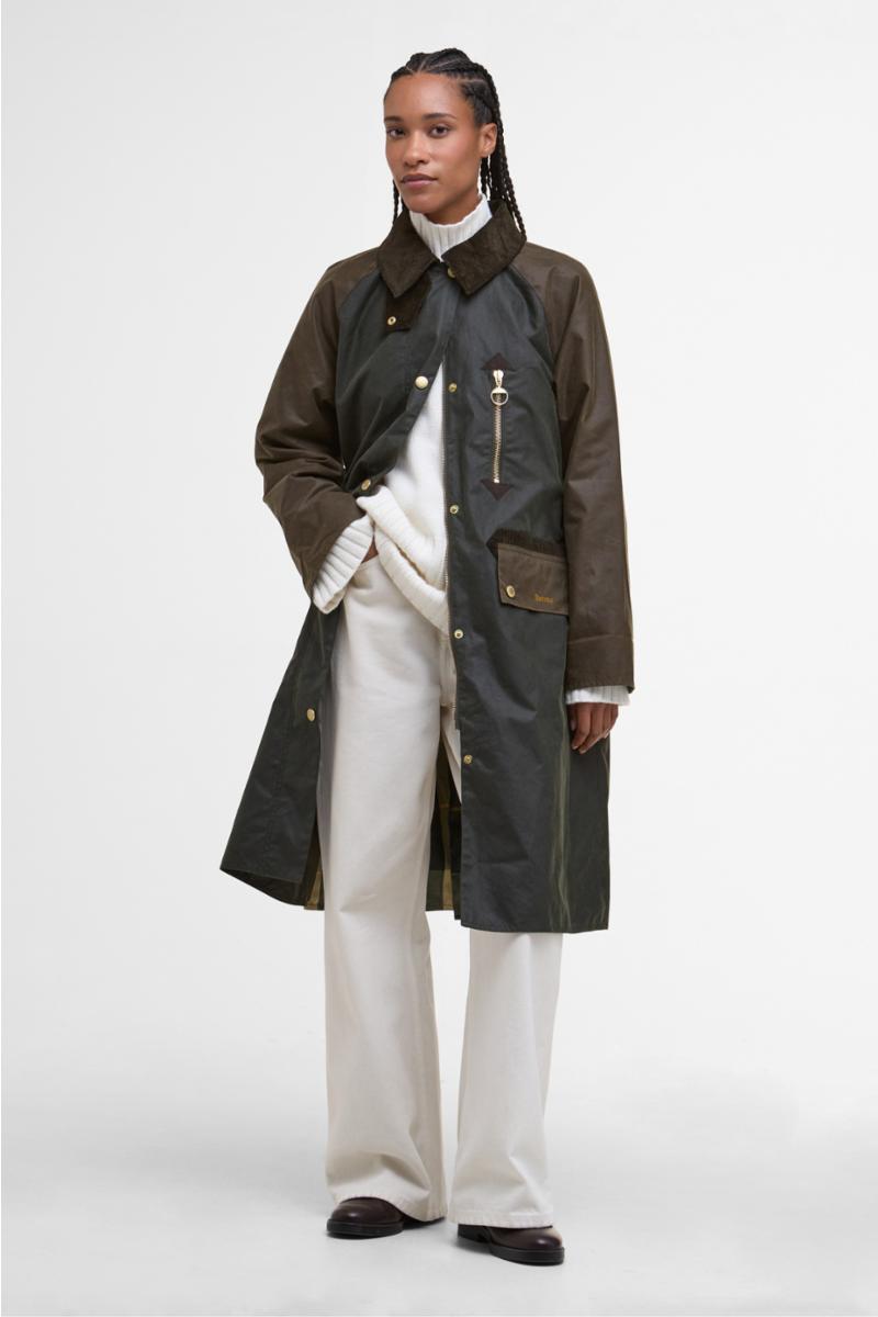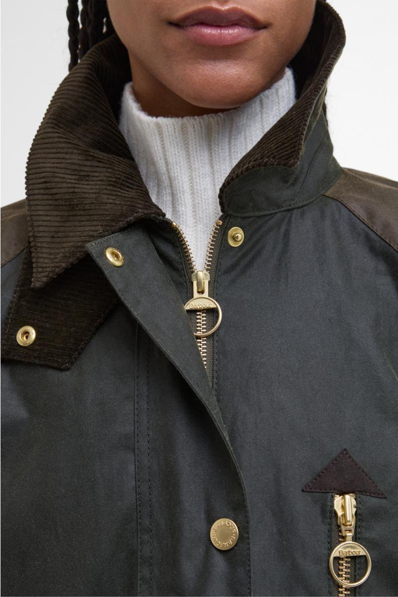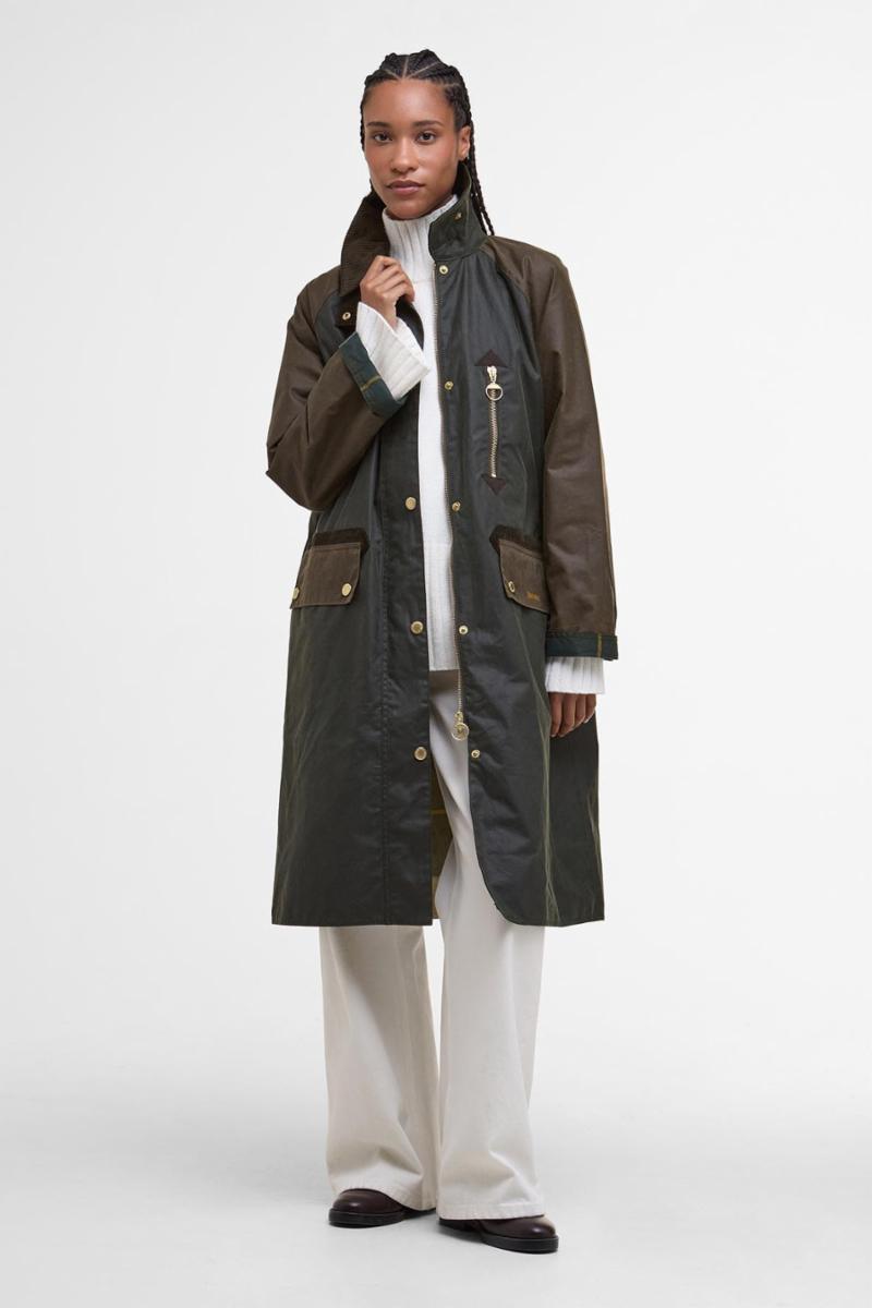 Med et arkivinspirert design, bringer Barbour Evette Waxed Car Coat arv & stil til det moderne livet. En nydelig høstkåpe i unik farge miks. Limited utgave i butikk.
