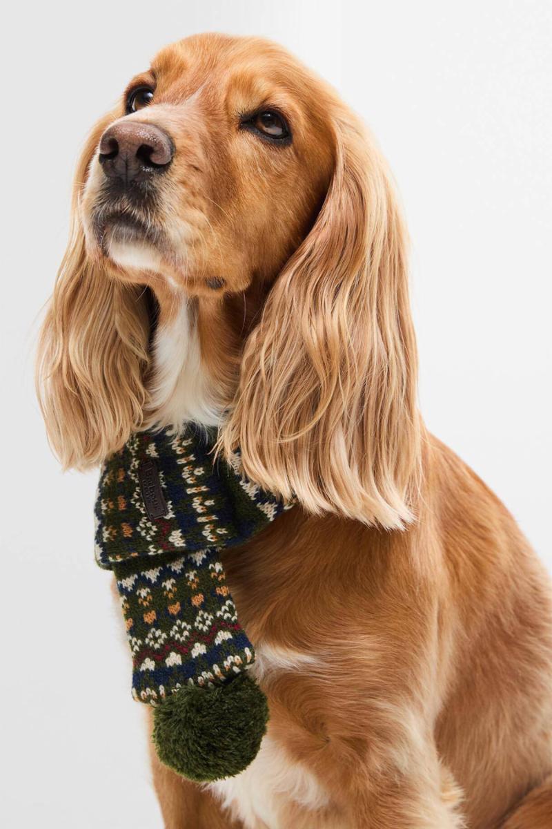 Barbour Marlow Fair isle Dog Scarf viser et strikket design og holder garantert din firbeinte venn varm denne vinteren.