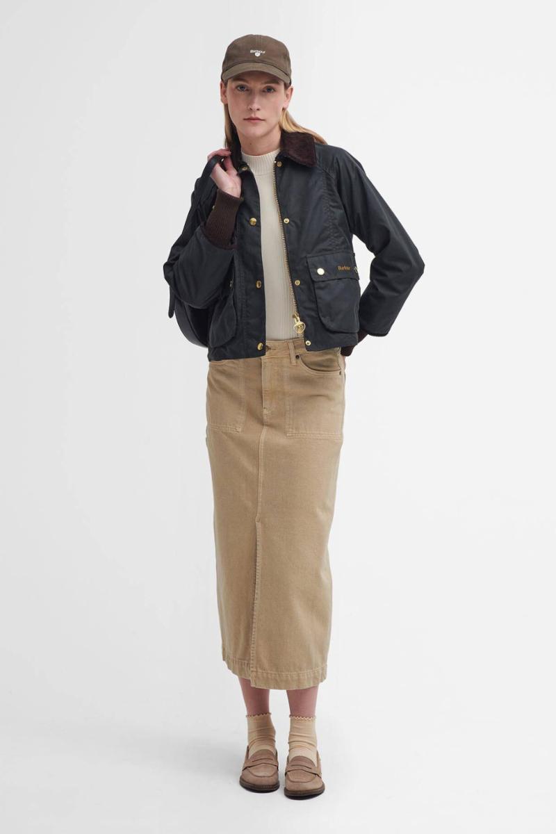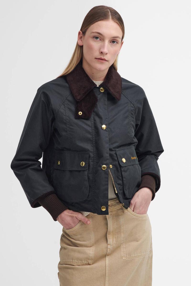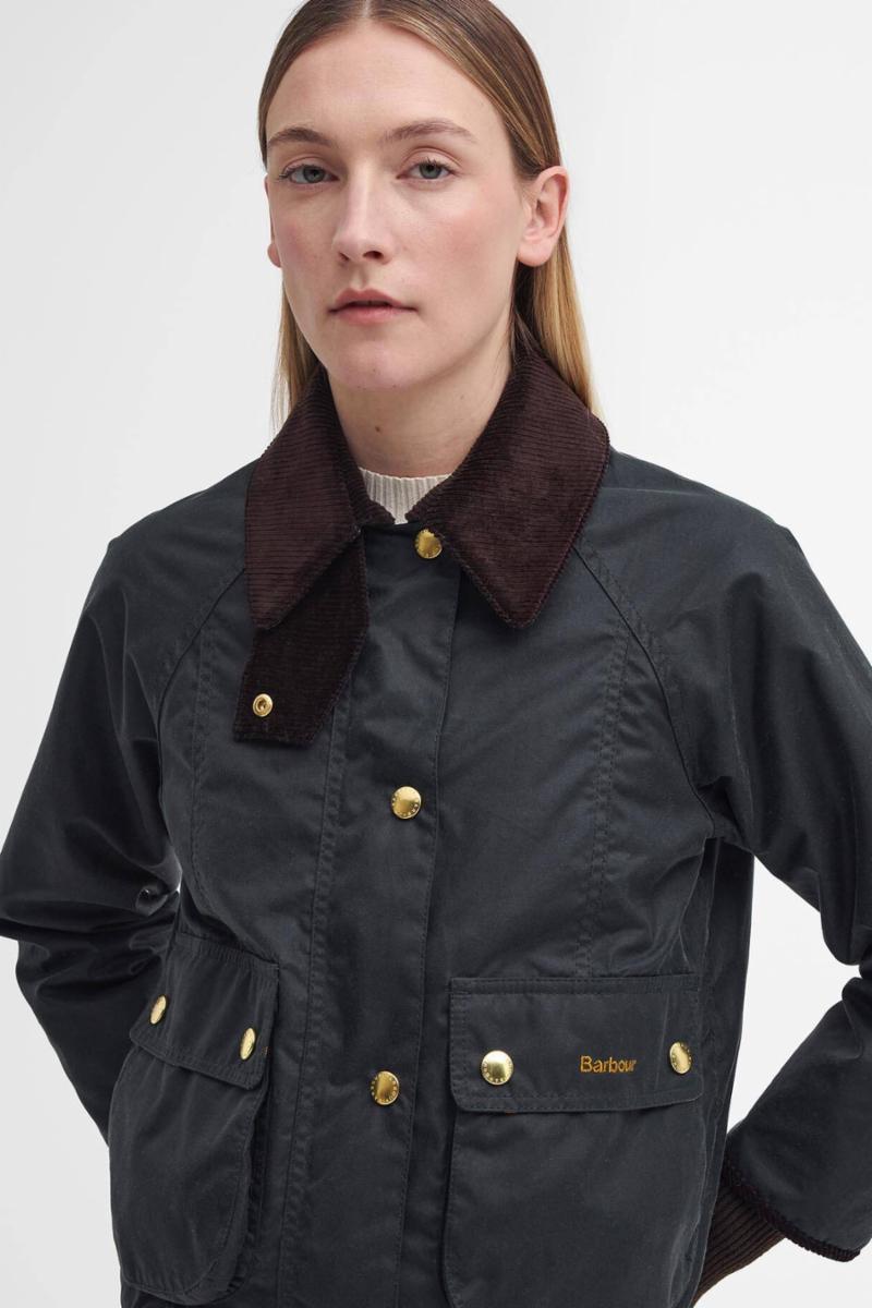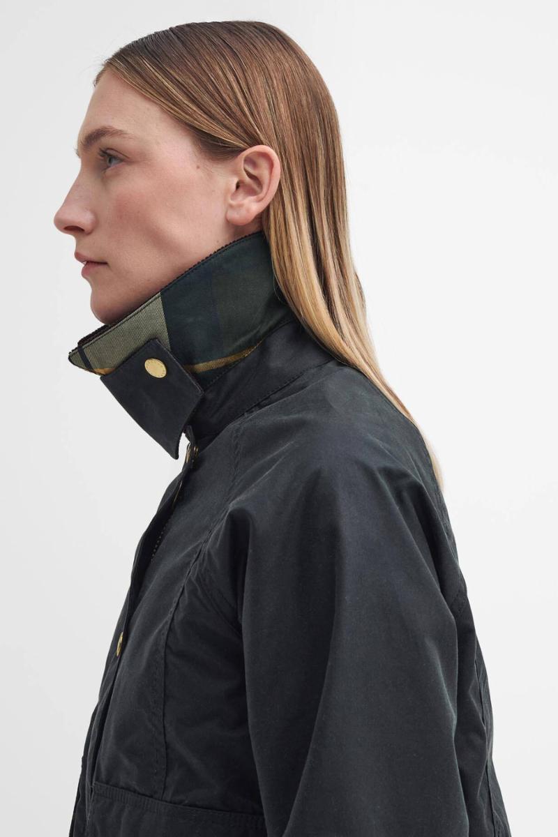 Barbour Beadnell Wax Jacket har vært en del av Barbours signaturvoksede jakker og tilbyr en feminin, skreddersydd gjengivelse av den bestselgende Bedale voksede jakken for menn til samlingen. Denne sesongen får Beadnell et moderne nytt utseende ettersom Barbour Cropped Beadnell Waxed Jacket viser overdimensjonerte detaljer i den originale stilen. Med store, gullfargede, merkede trykknapper og de tradisjonelle sallommene, er denne stilen komplett med snorkrage og overdrevne elastiske mansjetter for et moderne preg.