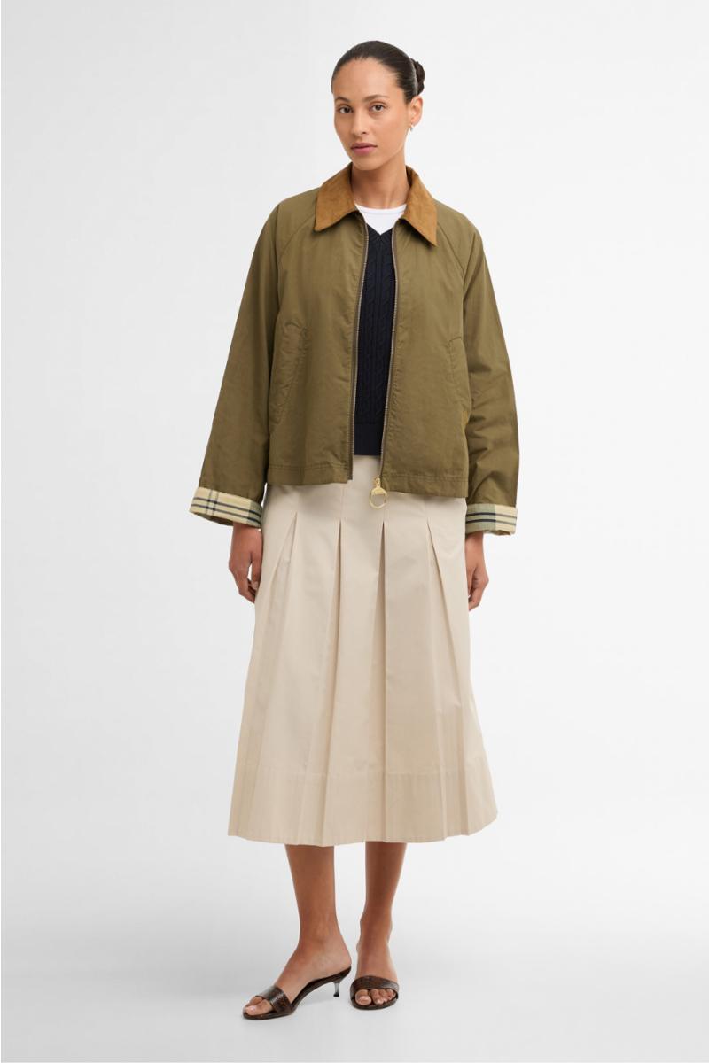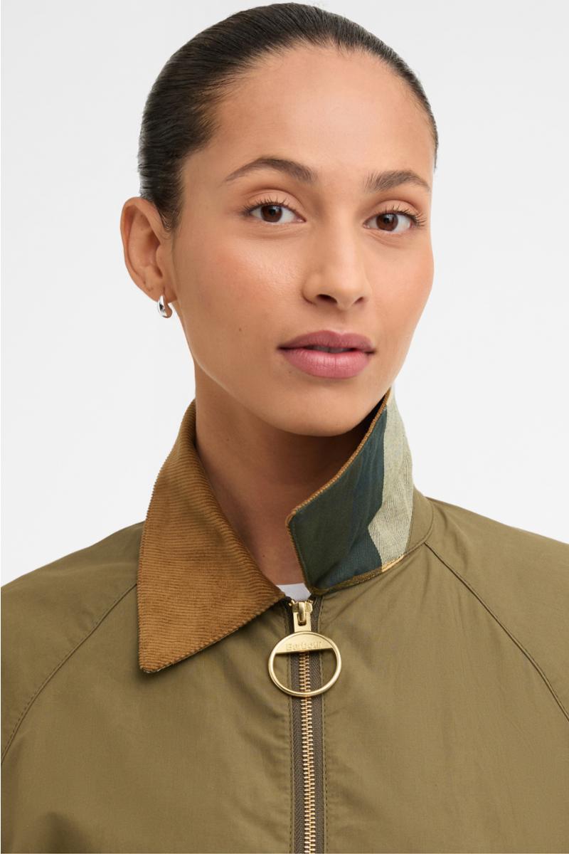 Barbour Catlin Casual Jacket bringer uanstrengt stil med en feminin kant. Skåret i en kort, subtil A-linje silhuett, den har en dyp omvendt boksfold bak for bevegelse og form. En synlig glidelås med en signaturring og pene passpolerte lommer gir et moderne preg, mens tartan undermansjetter nikker til Barbours arvsjarm.