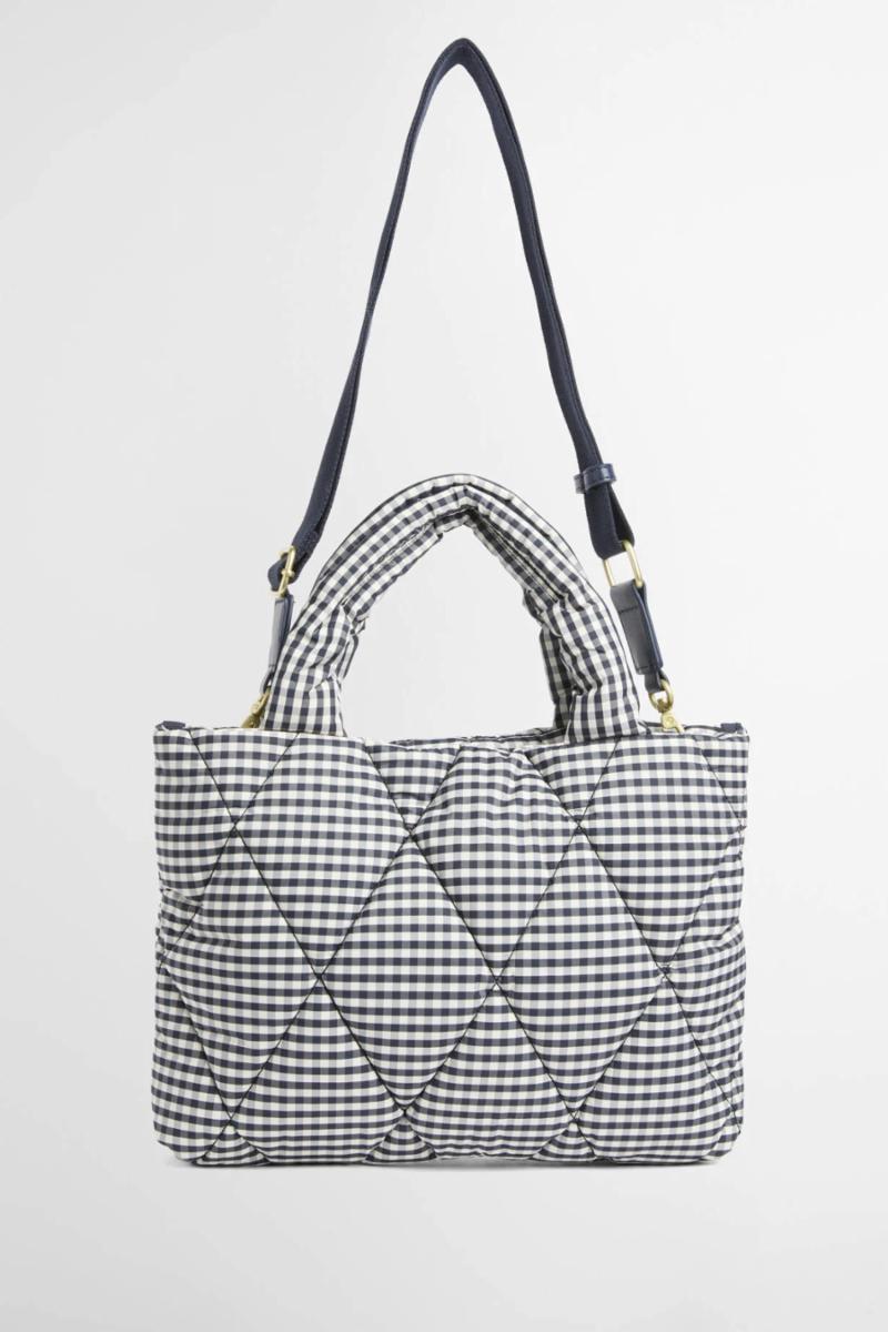 Barbour Riah Mini Quilted Tote Bag er et sjarmerende og funksjonelt tilbehør med et vattert gingham rutete design med et XL diamantdynemønster. Den inkluderer polstrede gripehåndtak, en avtakbar skulderstropp, en sikkerhetslomme med glidelås og en trykknapp for sikker oppbevaring. Ferdig med en stor vevd merkevareetikett på den ytre fronten, kombinerer denne minivesken stil og praktisk funksjonalitet uten problemer.