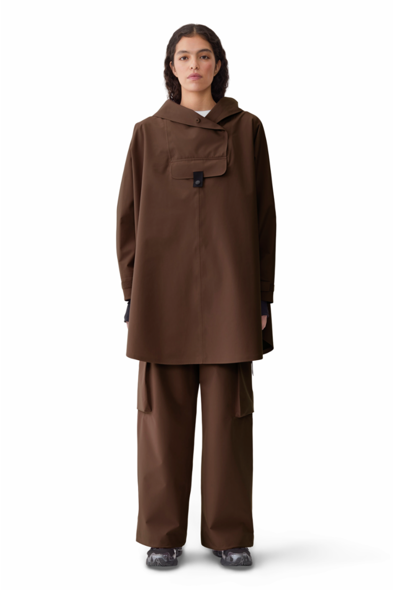 Med sin glatte silhuett og overdimensjonerte passform ser bergensponchoen bra ut på alle – uansett kroppstype og hvordan du føler deg. Den kombinerer tekniske funksjoner og minimalistisk design for å sikre at plagget tåler tidens tann. Bergensponchoen ble designet i regnbyen Bergen.