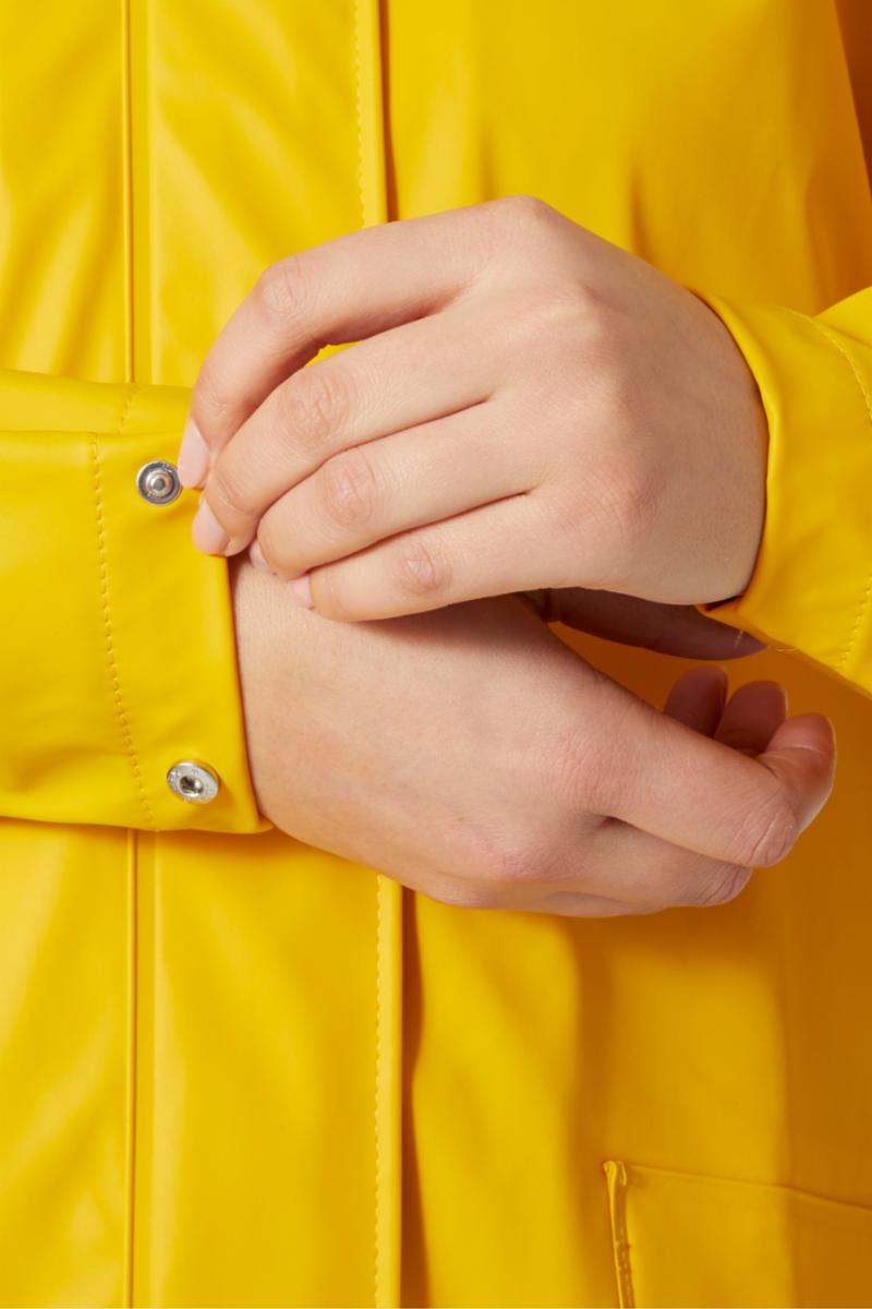 Inspirasjon er hentet fra den ikoniske Helly Hansens regnjakke for fiskere for å designe denne helt regntette regnjakken i retrostil. Moss Raincoat til dame er vindtett og pustende, takket være ventilasjon bak.