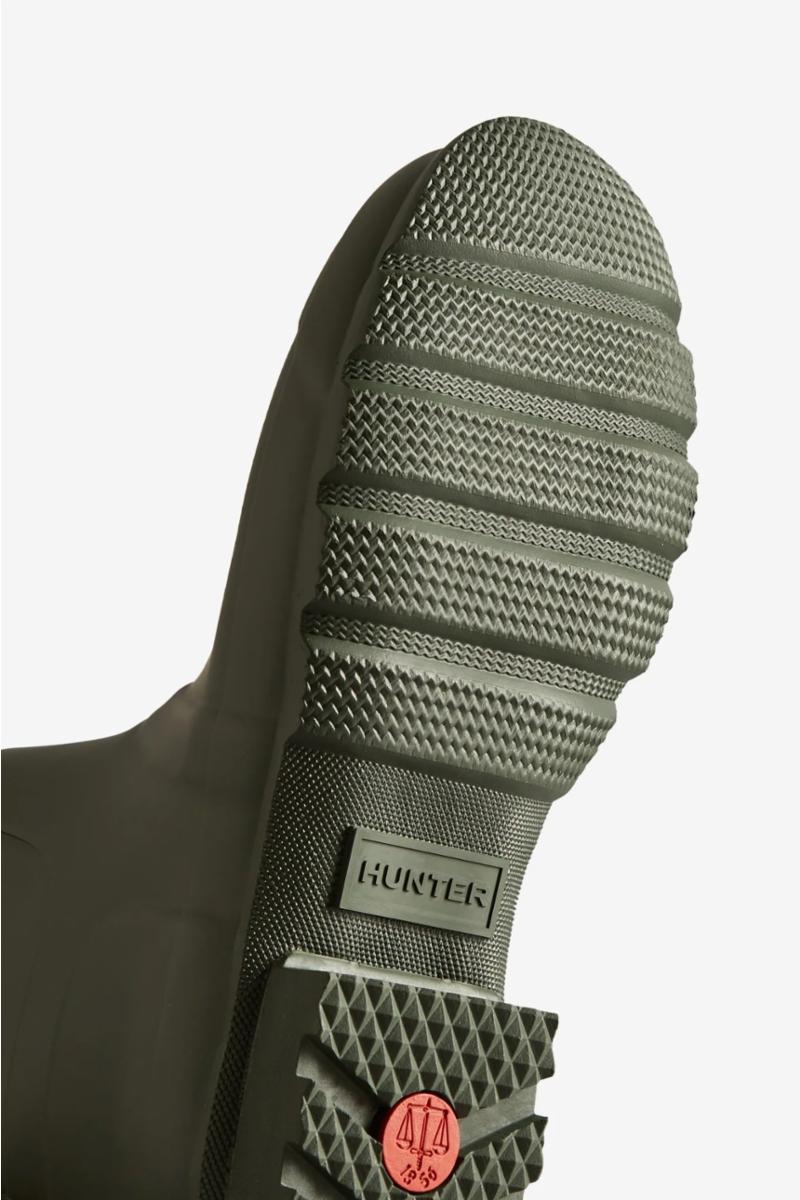 The Men's Original Short Wellington Boot tar den ikoniske designen til den høye støvelen og skalerer den ned for en allsidig og komfortabel stil. Fra jeans til chinos er styling enkel takket være høyden på midten av leggen. Hver støvel er laget av naturgummi og er håndlaget og satt sammen over tre dager før den vulkaniseres for overlegen beskyttelse. Med Hunter Original slitebanemønsteret og et komfortabelt polyesterfôr, er denne klassiske svarte vanntette støvelen en essensiell hverdag.