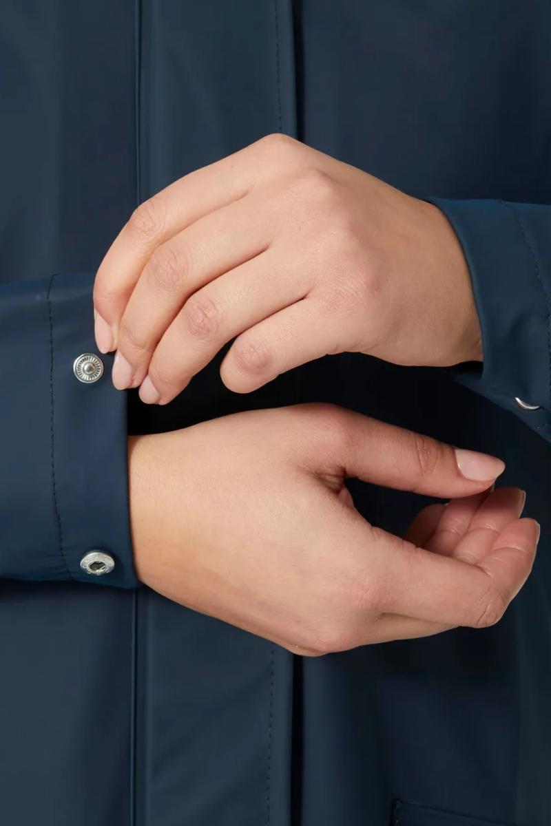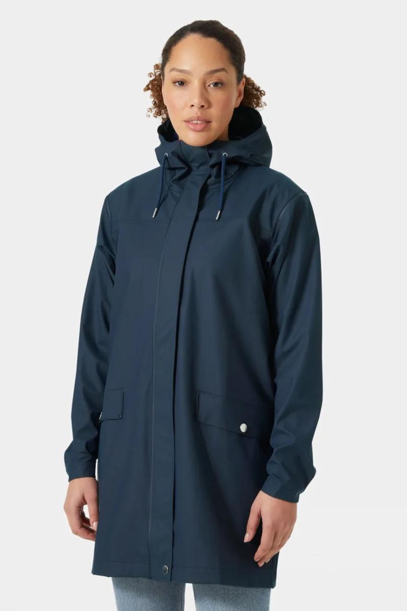 En lang, retroinspirert regnfrakk laget med vår vanntette Helox+ teknologi.