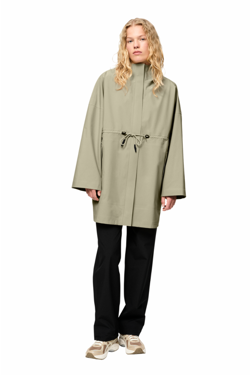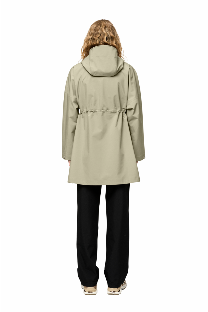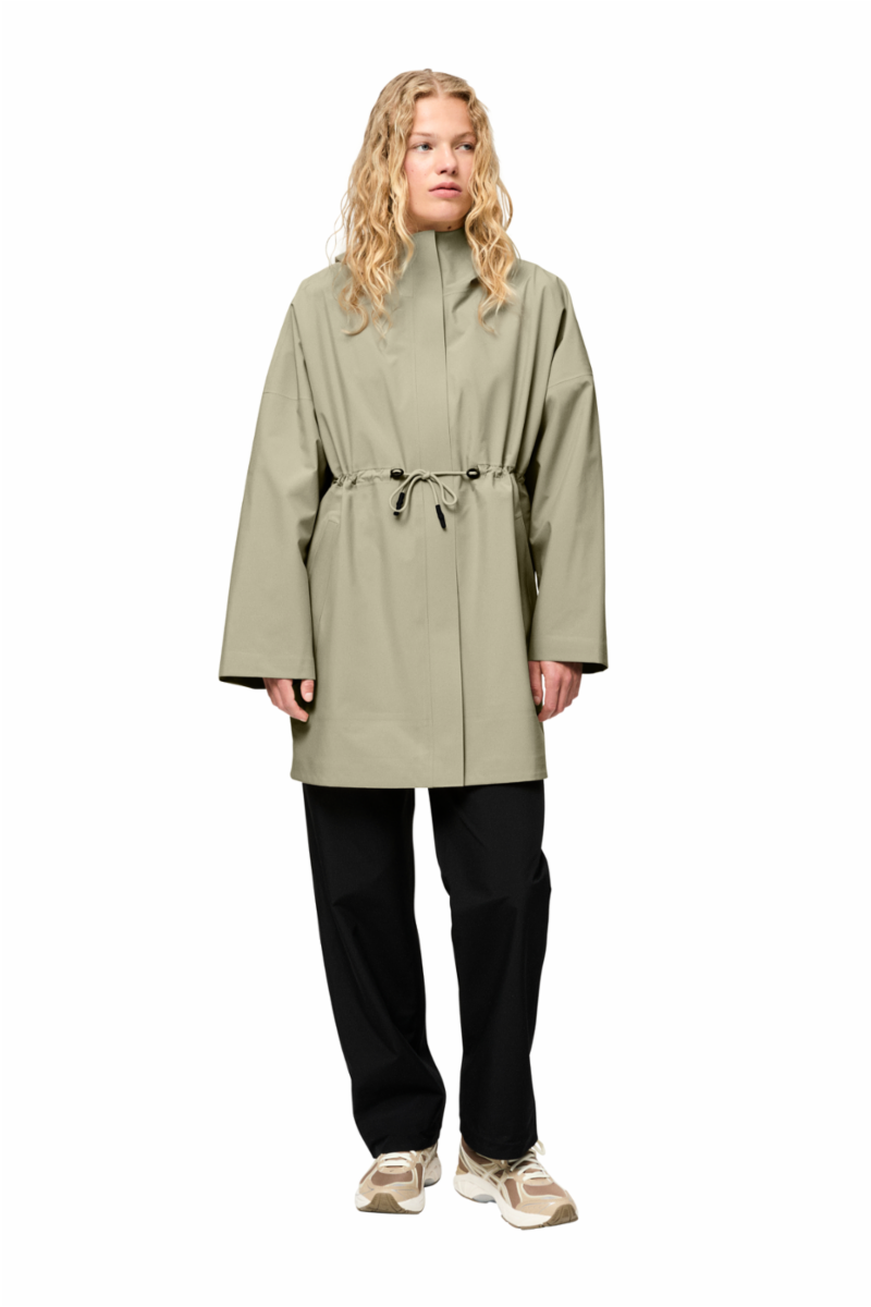 Med sitt slanke design og funksjonelle funksjoner tilbyr Flisnes en moderne og minimalistisk versjon av den klassiske tech-trench. Den er laget av et høykvalitets 3-lags skallstoff som er vanntett, pustende og vindtett. Kåpen er kuttet med drop shoulders og bred silhuett, men den justerbare snøringen i midjen gjør det mulig å tilpasse passformen.