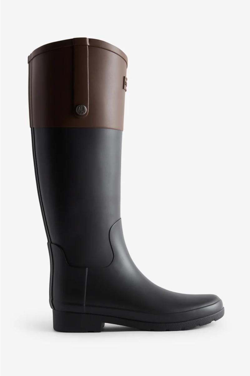 Med en slankere passform og aksentdetaljer, har Refined Tall Riding Wellington-støvelen en skreddersydd overlinje, og er konstruert av færre gummilag for en mer lettvektsfølelse. Håndlaget og fullstendig vanntett, denne ridestøvelen for kvinner med en matt tofarget finish blander sømløst praktisk og stil for et elegant rideutseende.