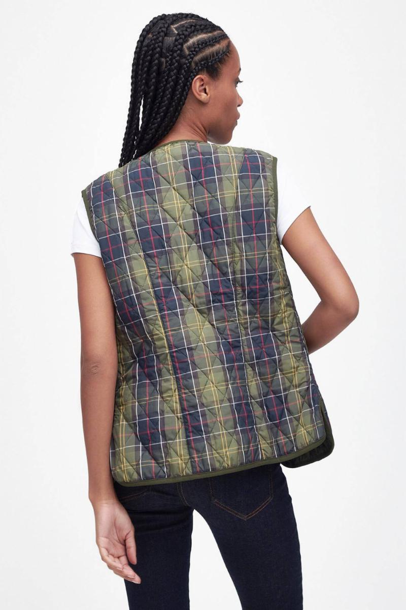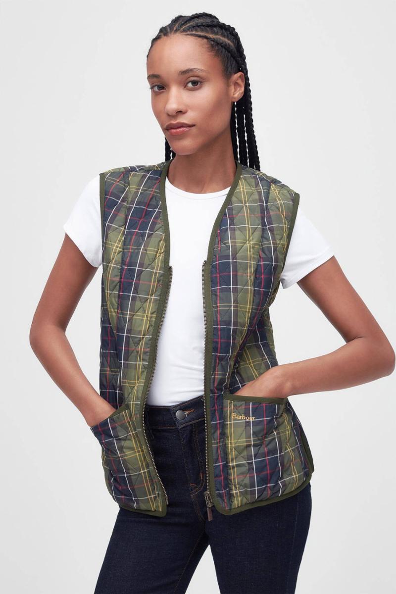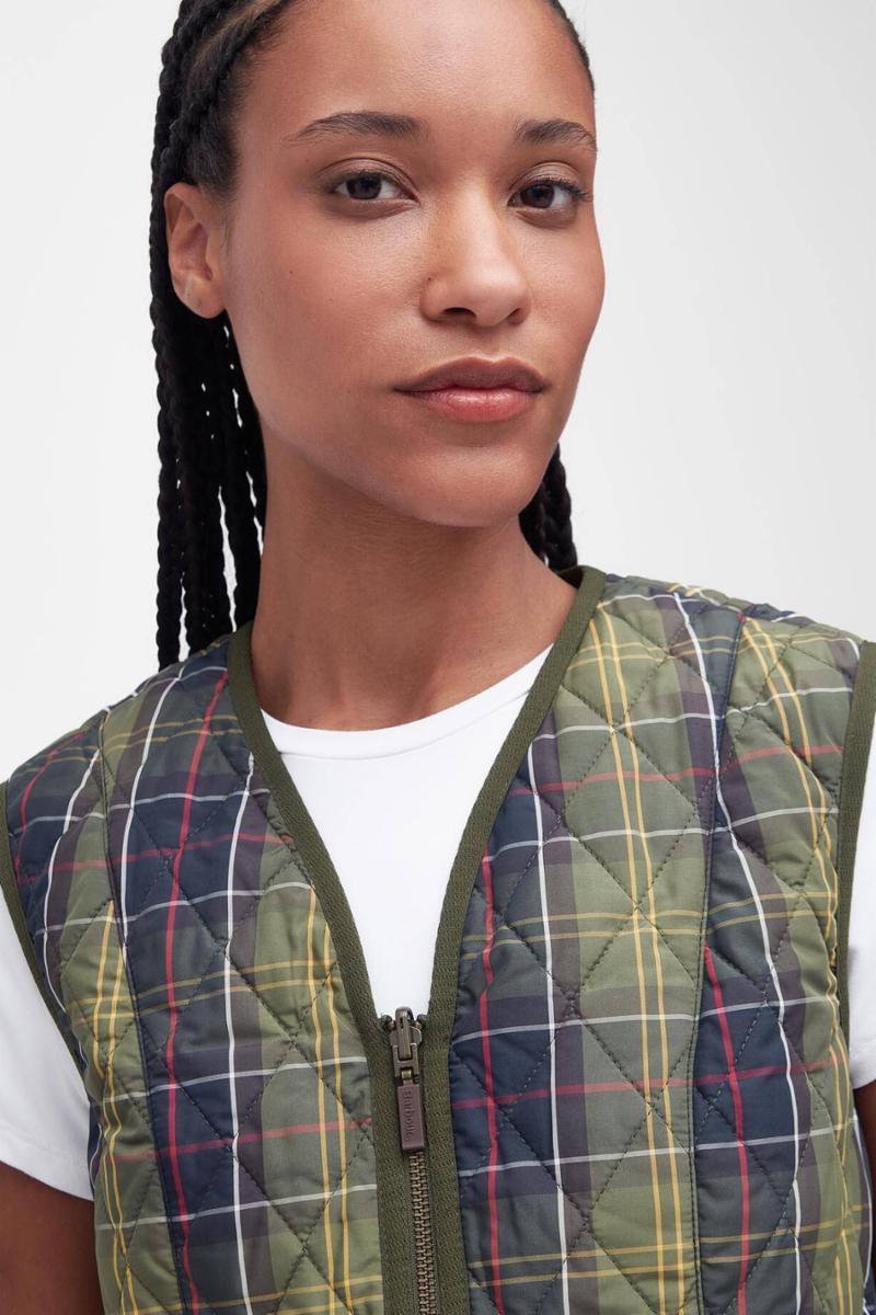 Kompatibel med interaktive Barbour-jakker, denne diamant-quiltede foringen bærer ikonisk tartan og er detaljert med dype lappede lommer, kontrast Barbour-broderi og grosgrain-binding til kantene.